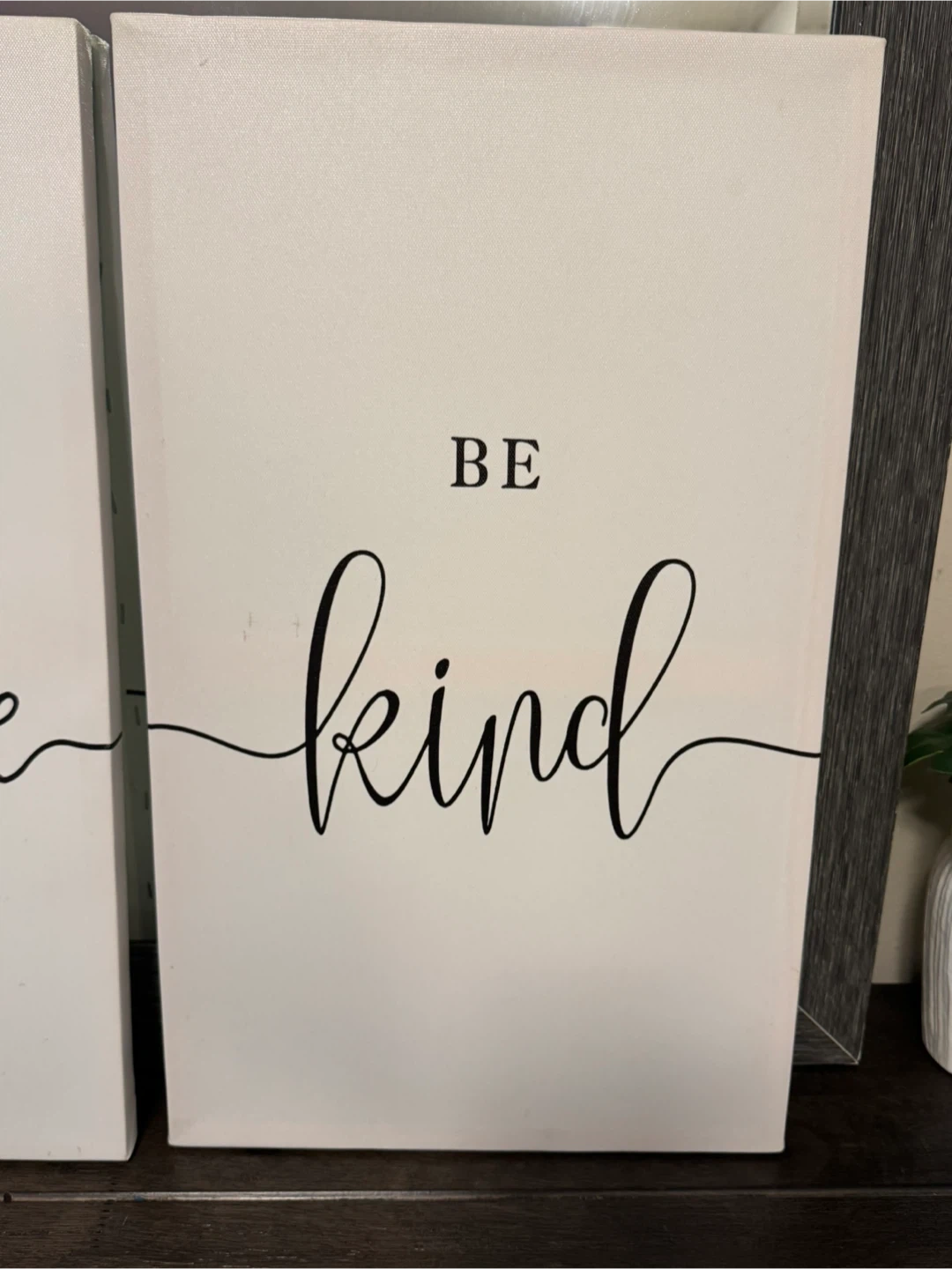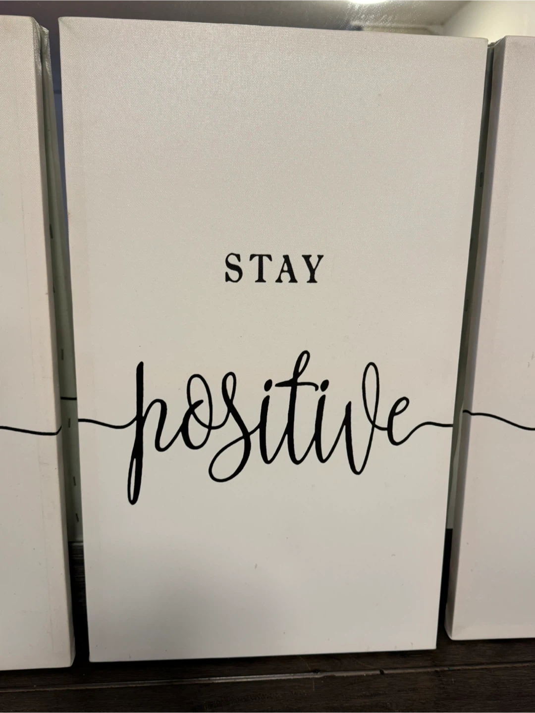 This set includes three canvas prints with motivational phrases. 'Work Hard' is on one, 'Stay Positive' on another, and 'Be Kind' on the third. They're perfect for adding a touch of inspiration to any room.