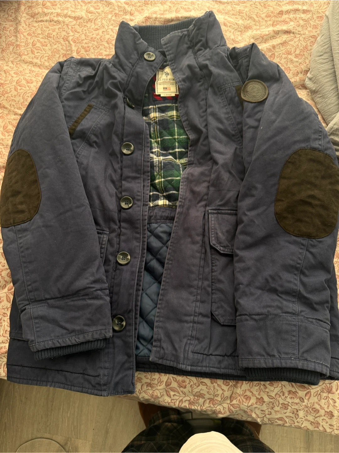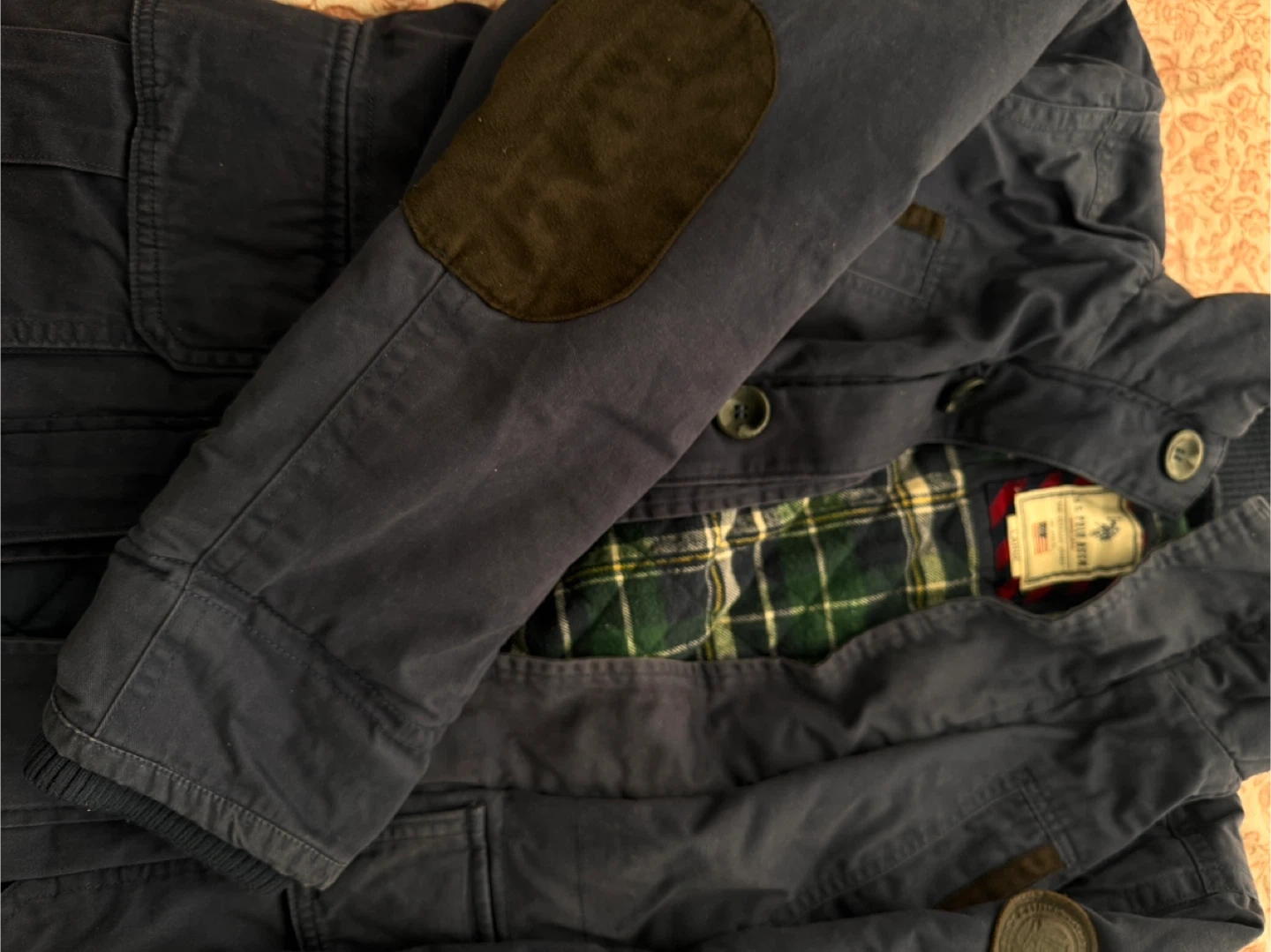 A smart U.S. Polo Assn. Navy Jacket in a large size. It is stylish with zip as well as button closing. It also has waist tighting feature which gives a sleek and smooth finish.