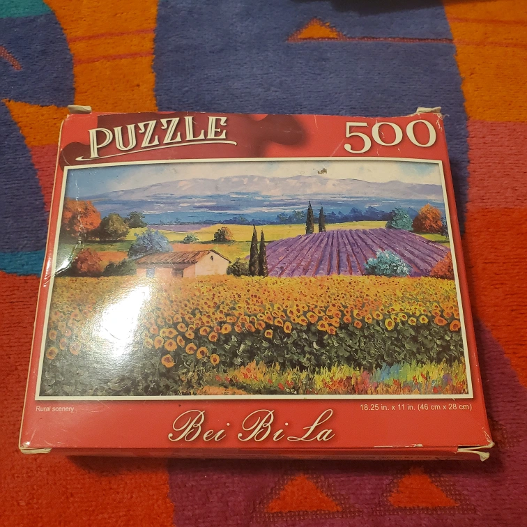 Bei Bi La 500-piece puzzle featuring a beautiful rural scenery design. The puzzle's dimensions are 18.25 inches x 11 inches (46 cm x 28 cm). All pieces are included. Never used but opened, box shows some wear.