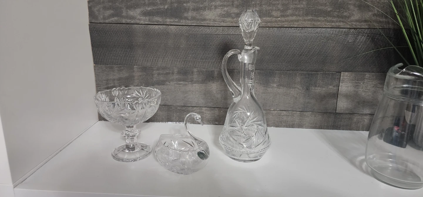 Crystal Glassware Set - Decanter, Footed Bowl & Swan Dish