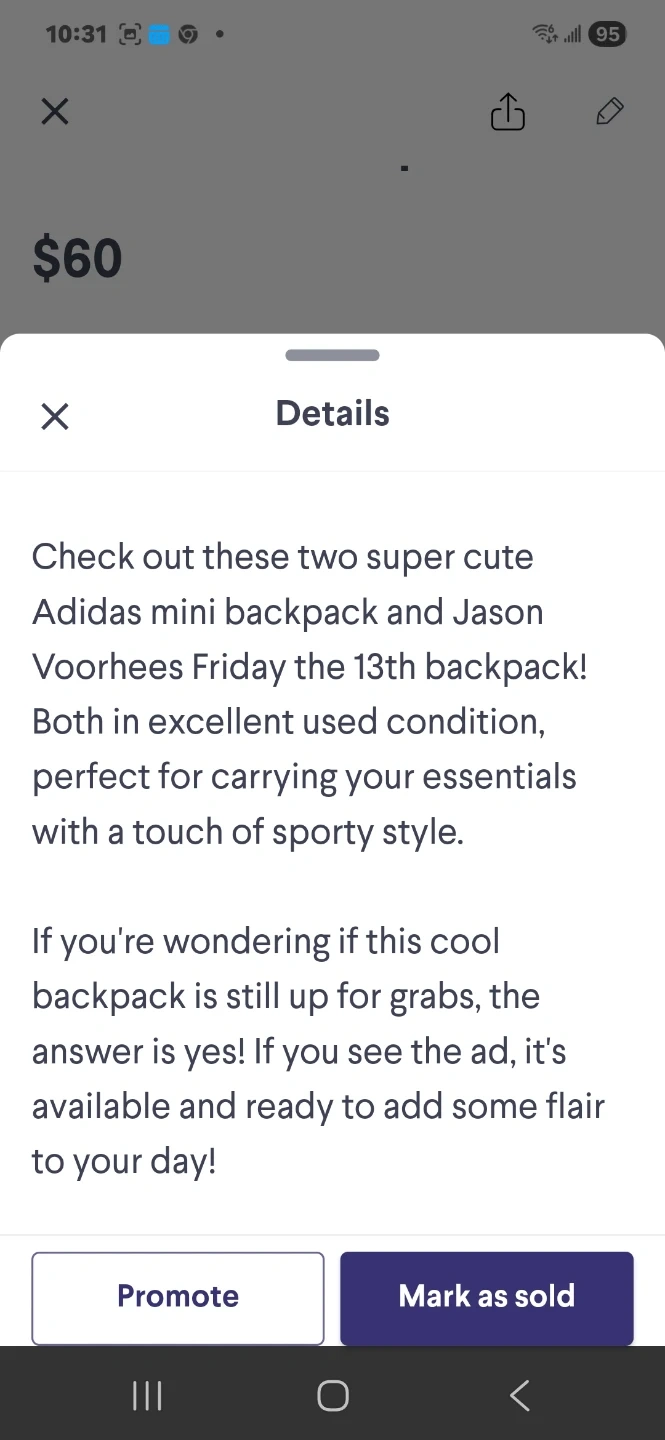 Buy & SellBack PacksBack Packs$45Super cool back packs for carrying all your essentials with a touch of sporty style. Both in excellent condition!ConditionLike newWHERE TO MEETCheck LocationView MapSELLERSabrina SinghBrooklin222 reviews0 chats·0 favorites·2 viewsSEND CHAT TO SELLERHi Sabrina Singh! I’m interested in your listing.Hi Sabrina Singh! I’m interested in your listing.Get the Karrot app to chatSign In to chat