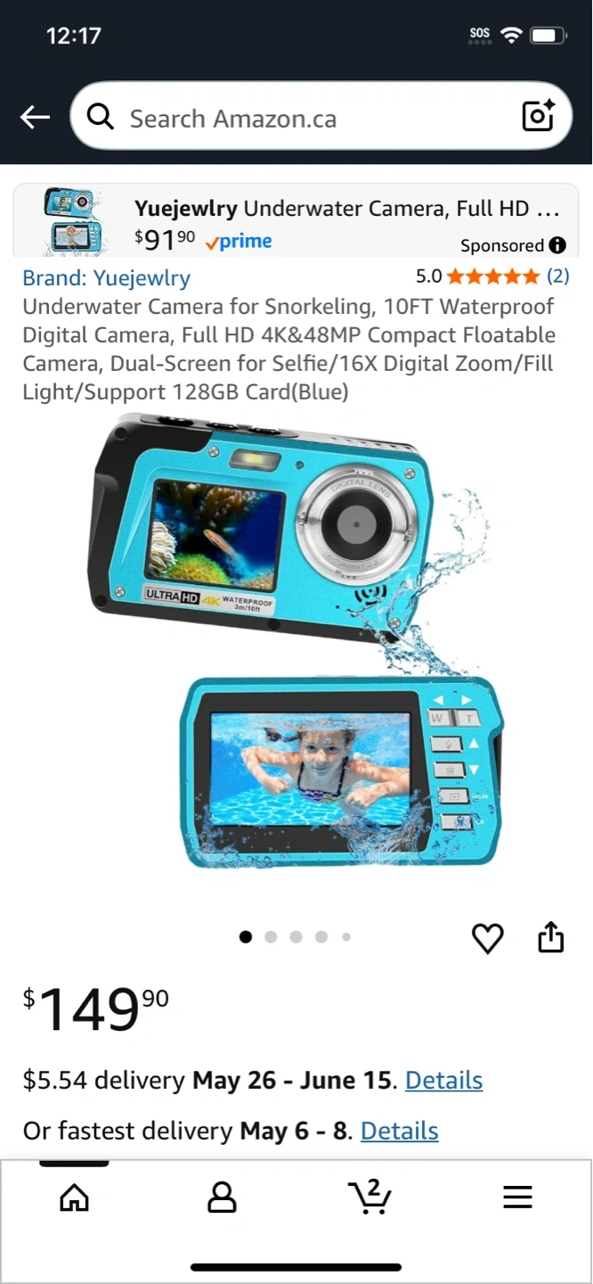 This is a Yuejewlry underwater digital camera. It's waterproof up to 10ft and supports 128GB cards. The camera is blue and has a dual screen. It's great for snorkeling and capturing memories underwater!