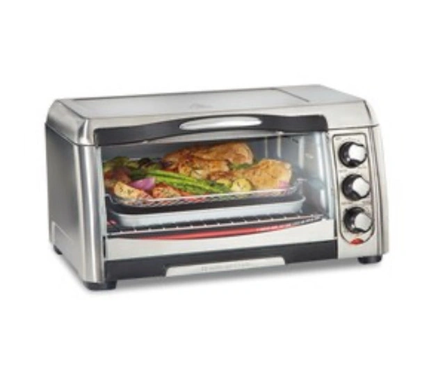 Hamilton Beach 1800 watts countertop convection rotisserie oven, perfect for baking, roasting, and toasting right on your kitchen counter! It's in good condition, ready to help you whip up delicious meals. It features convection technology for even heating. Specifications: * Brand: Hamilton Beach * Type: Countertop Oven * Features: 1800 watt Convection * Colour: Silver * Capacity: Large enough for a 12-inch pizza or a regular rotisserie chicken. Please note that this is missing the baking tray and rack. This oven is ready for a new home. If you see this ad, it's available! Remember to check out my other ads. Discount available for multiple purchases!