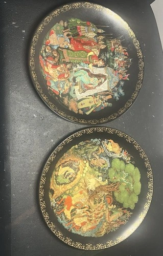 These are used decorative collector plates featuring Russian legends and fairy tales from Tianex and Bradex. Let me know if you're interested!
