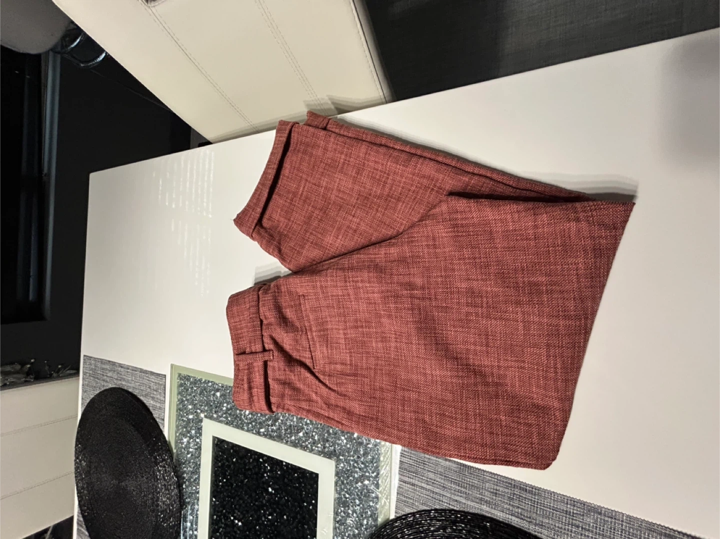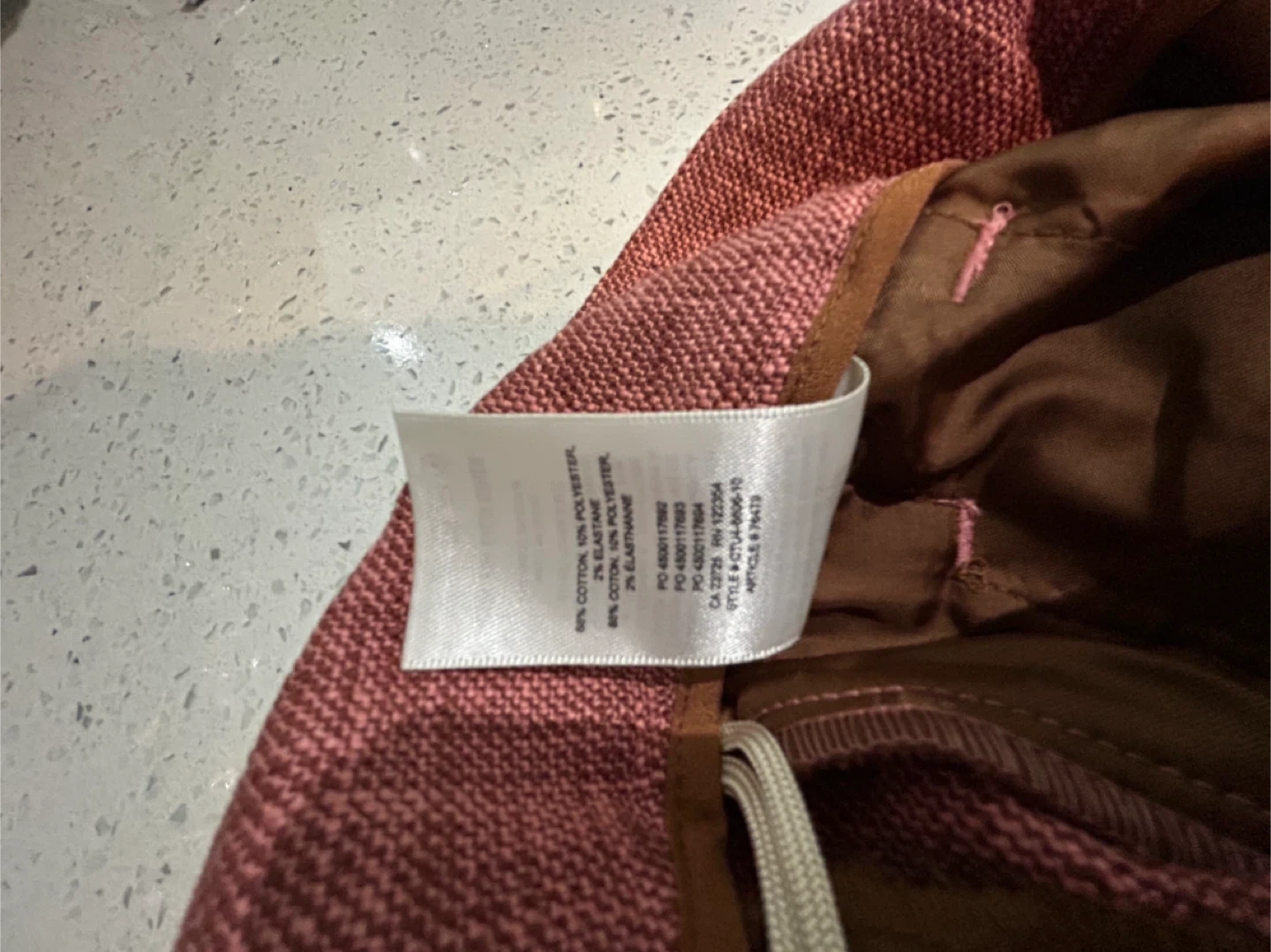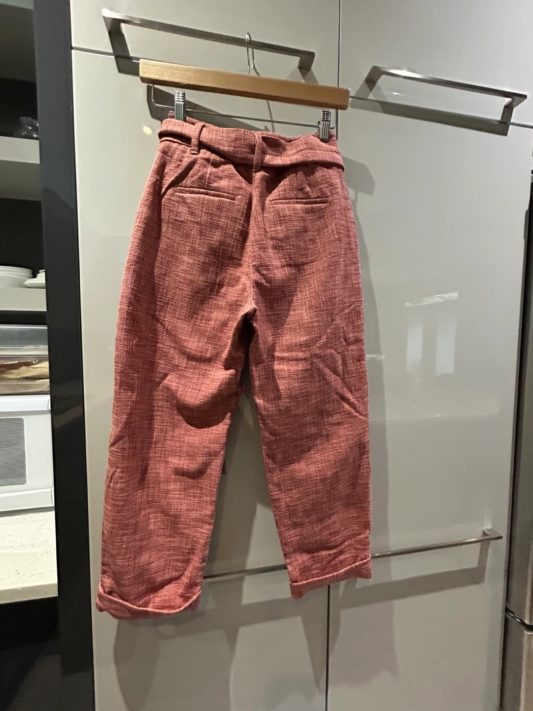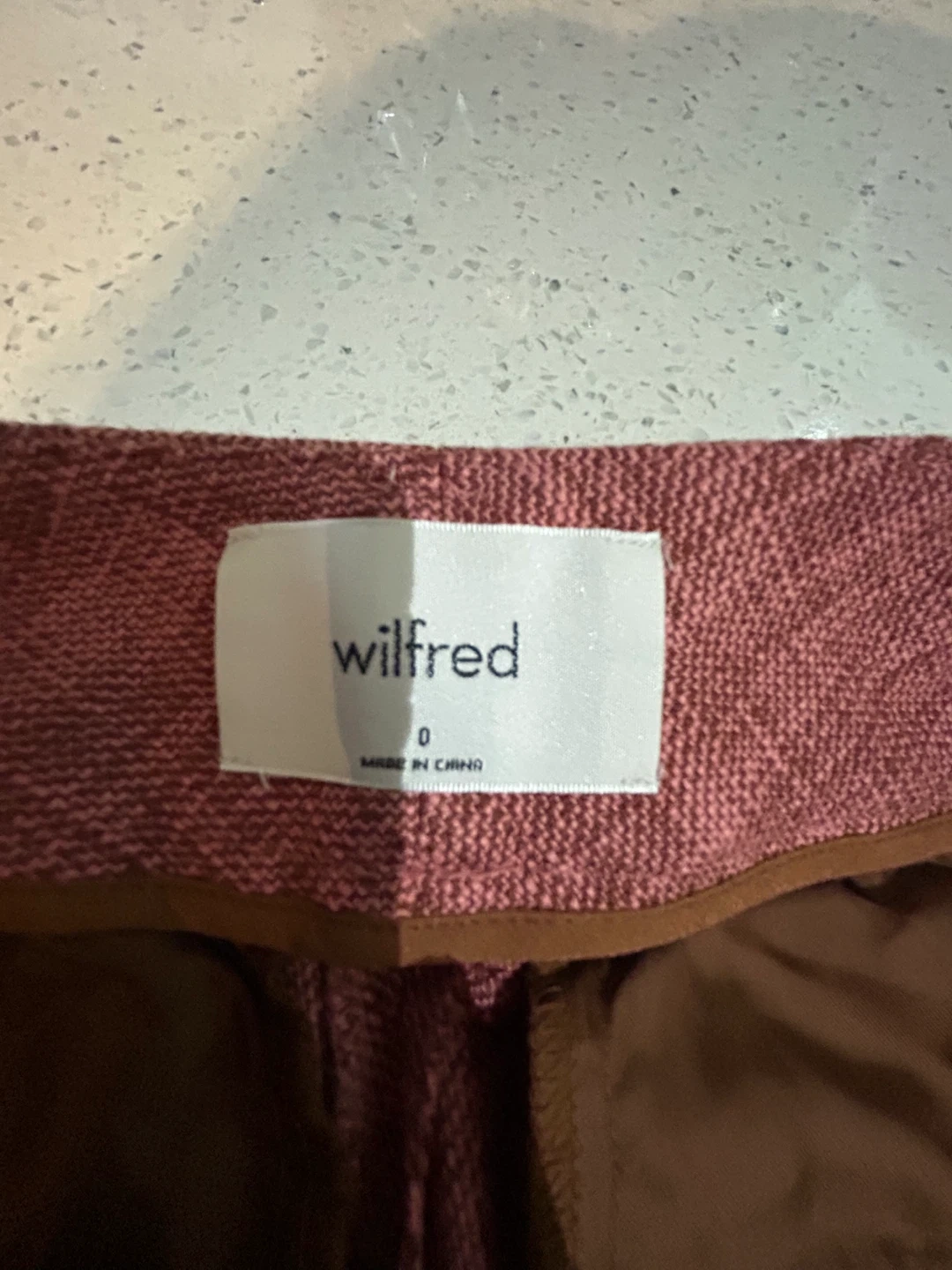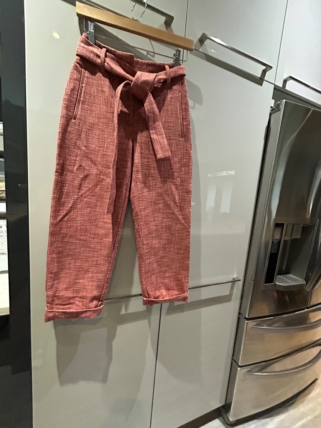 These Wilfred pants are a nice rose colour and feature a tie waist. They're made from a cotton blend fabric.