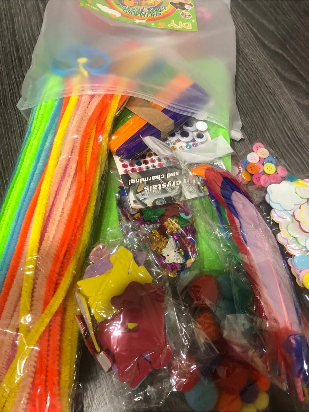 This DIY new craft kit is packed with all sorts of fun supplies! It includes colourful felt sheets, pom poms, pipe cleaners, sequins, buttons, feathers, and more. Perfect for kids' projects or anyone who loves to create. This craft kit stuff is the best help for school children for any project.