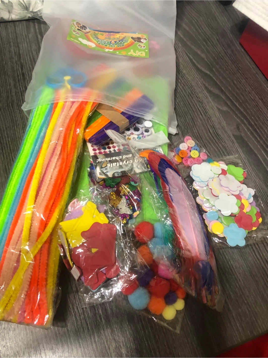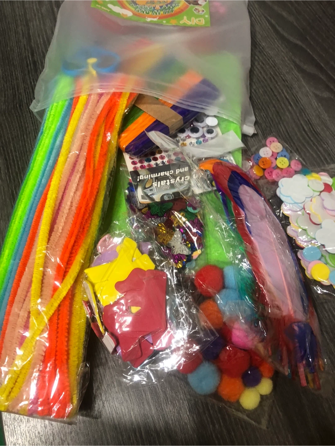 This DIY new craft kit is packed with all sorts of fun supplies! It includes colourful felt sheets, pom poms, pipe cleaners, sequins, buttons, feathers, and more. Perfect for kids' projects or anyone who loves to create. This craft kit stuff is the best help for school children for any project.