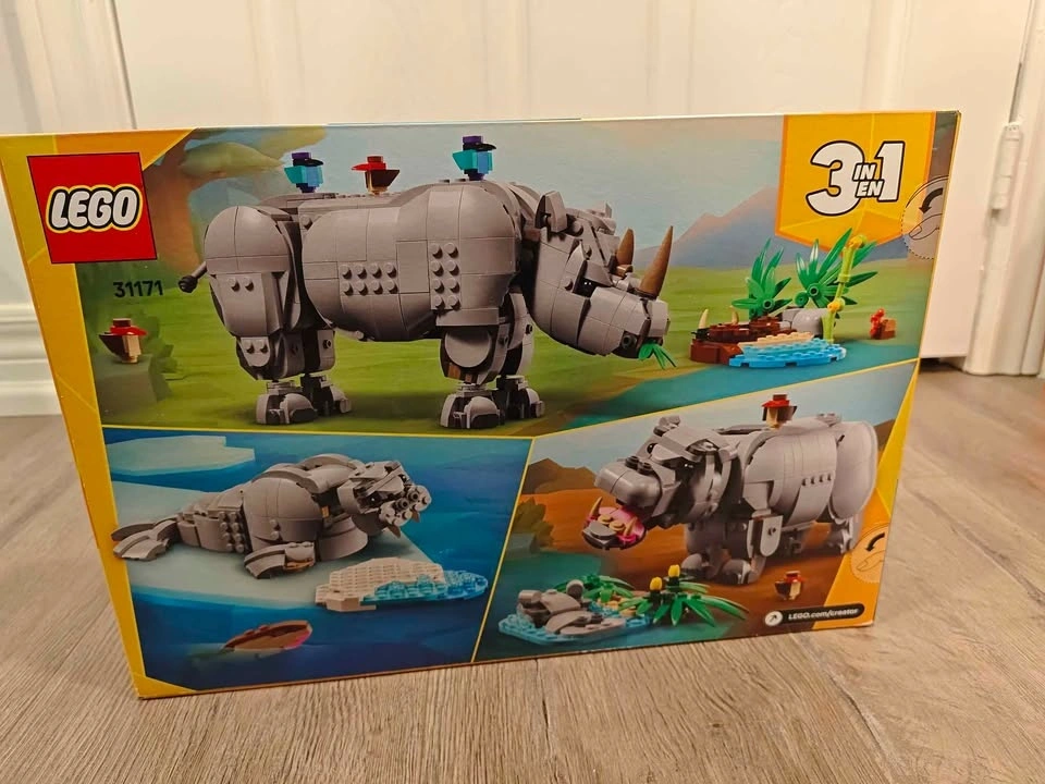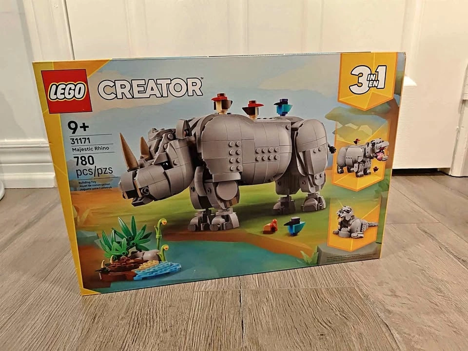 Selling a brand new LEGO 31171 Creator 3in1 Wild Animals Majestic Rhino with Birds. Stored in a pet-free, smoke-free environment. Brand new, sealed, and never opened. Please text me at [hidden information] for any questions. Pickup location: 330 Hwy 7 East, Richmond Hill, ON, or can meet anywhere within 5 km. No trades, and lowballers will be ignored.
