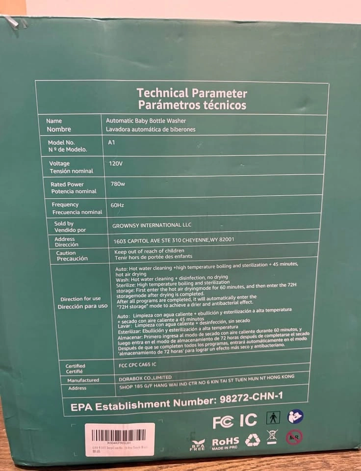 Brand new Grownsy Automatic Baby Bottle Washer in perfect condition. This all-in-one machine washes, sterilizes, and dries baby bottles and pump parts automatically — a must-have for busy parents!