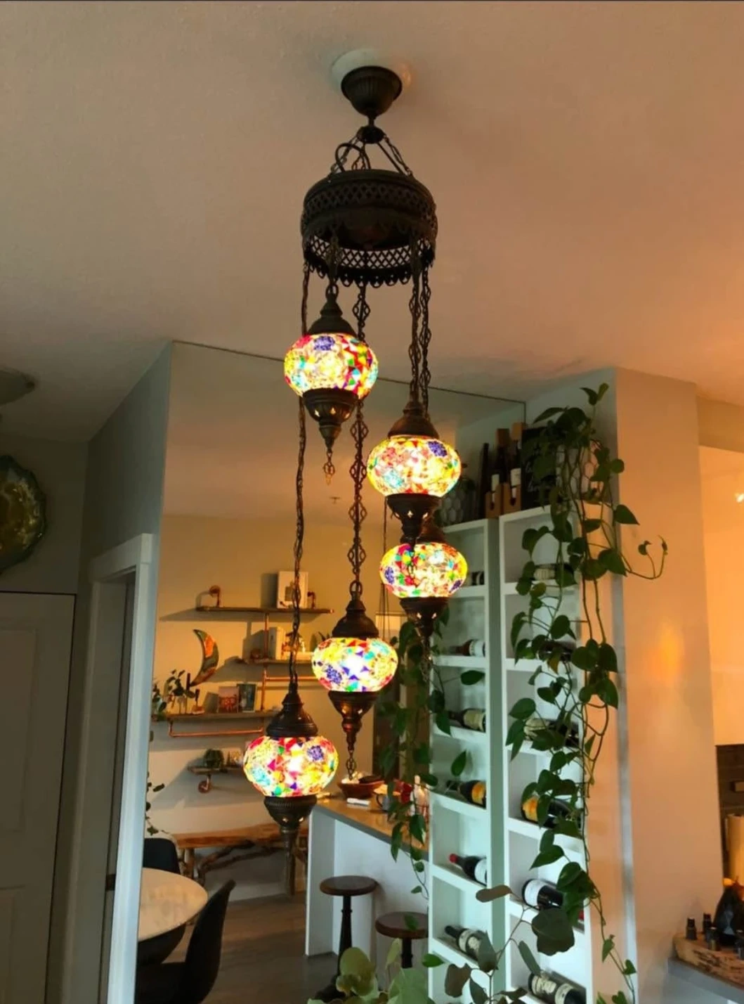 Add a vibrant touch to your space with this 5-light Turkish mosaic chandelier. Its colourful glass globes cast a beautiful glow. Perfect for creating a cozy ambiance in any room!
