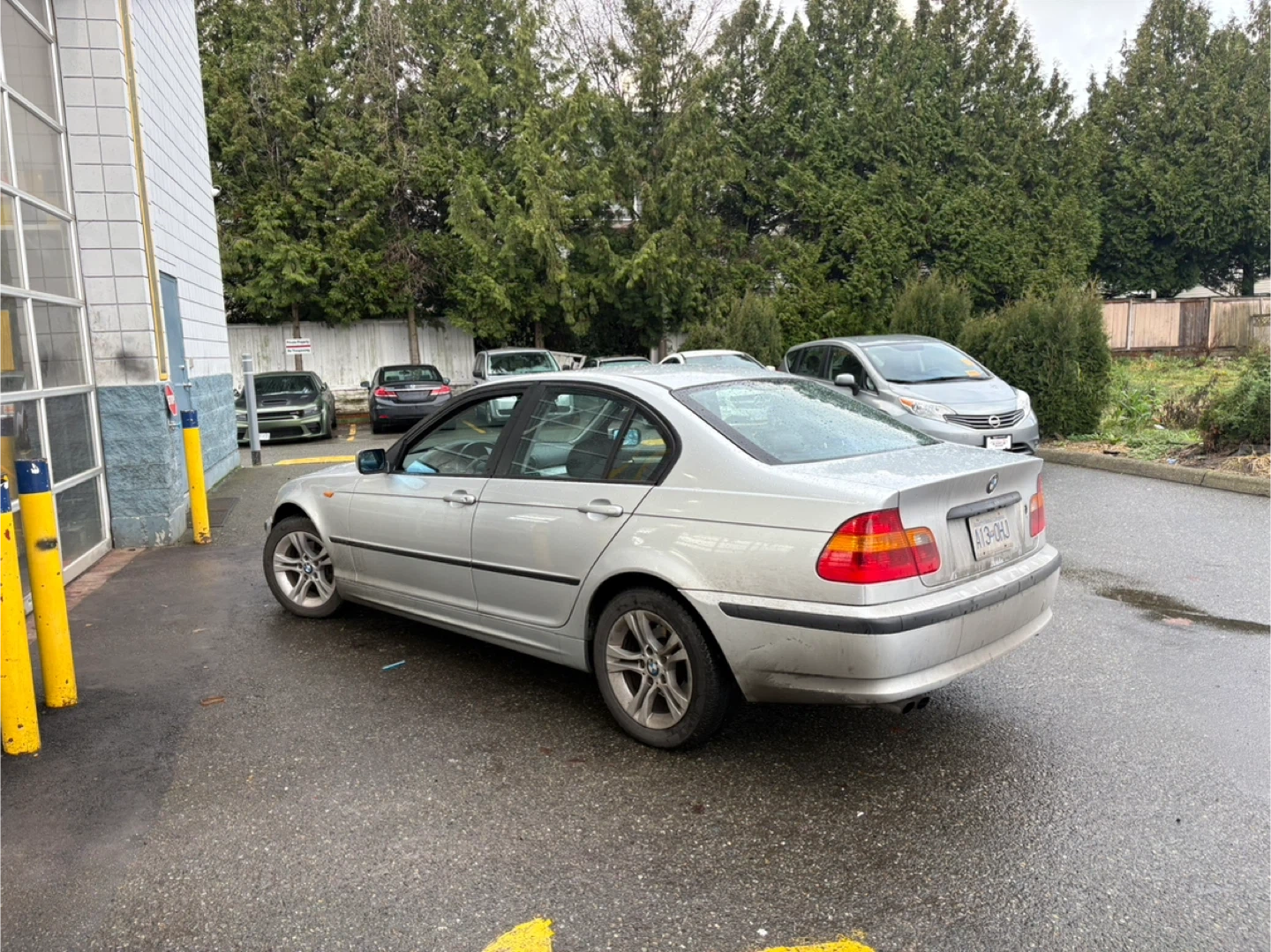 A silver BMW 3 Series sedan. It's an automatic transmission.