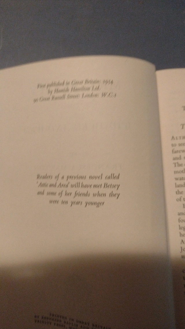 First edition hardcover book titled Mrs. Betsey: Or Widowed & Wed by Francesca Marton. Published by Hamish Hamilton, London, in 1954. Condition is Used - Good. For sale by owner. Curbside pickup available. Cash accepted.