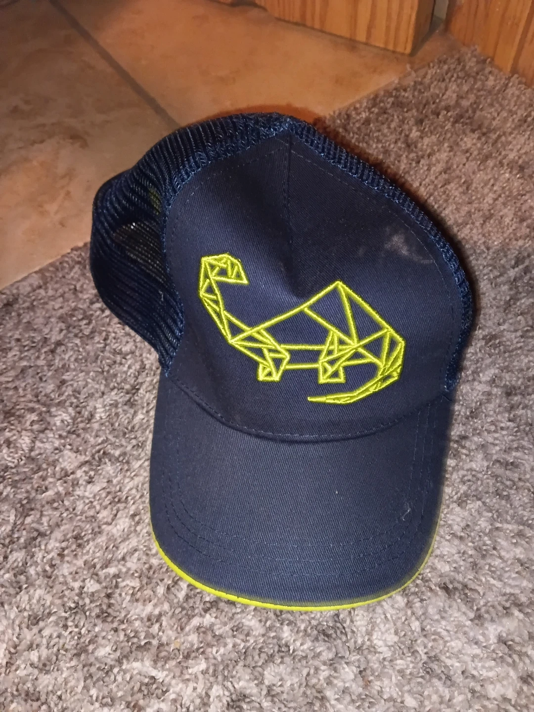 Navy Blue Trucker Hat with Yellow Geometric Design