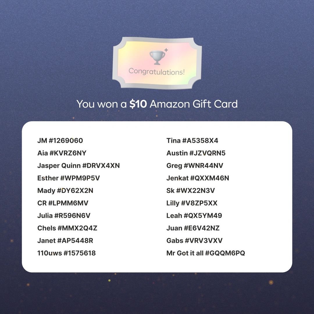 The winners have been revealed and gift cards have been distributed ๐ฅณ