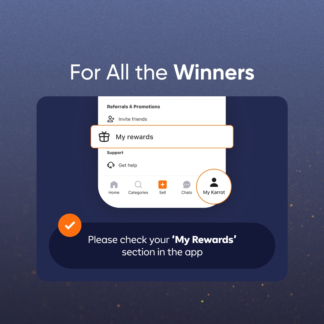 Grand Prize winner - Please check your "Chats" tab for a message from The Karrot Team to claim your prize!