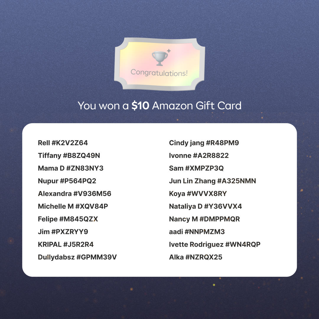 The winners have been revealed and gift cards have been distributed ๐ฅณ