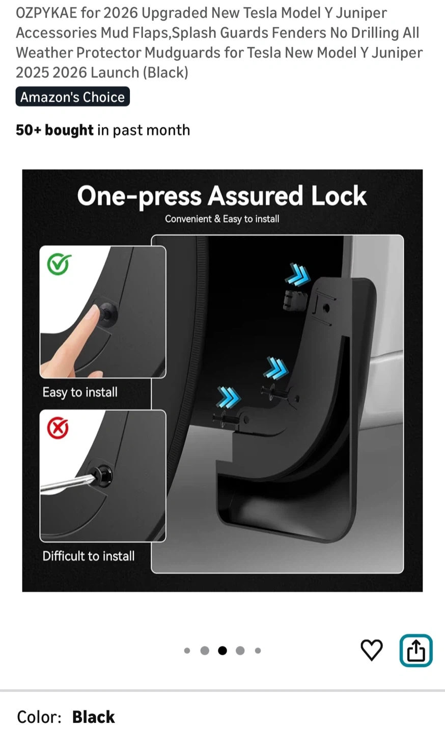 2026 Upgraded New Tesla Model Y Juniper Accessories Mud Flaps,Splash Guards Fenders No Drilling All Weather Protector Mudguards for Tesla New Model Y Juniper 2025 2026 Launch (Black)
