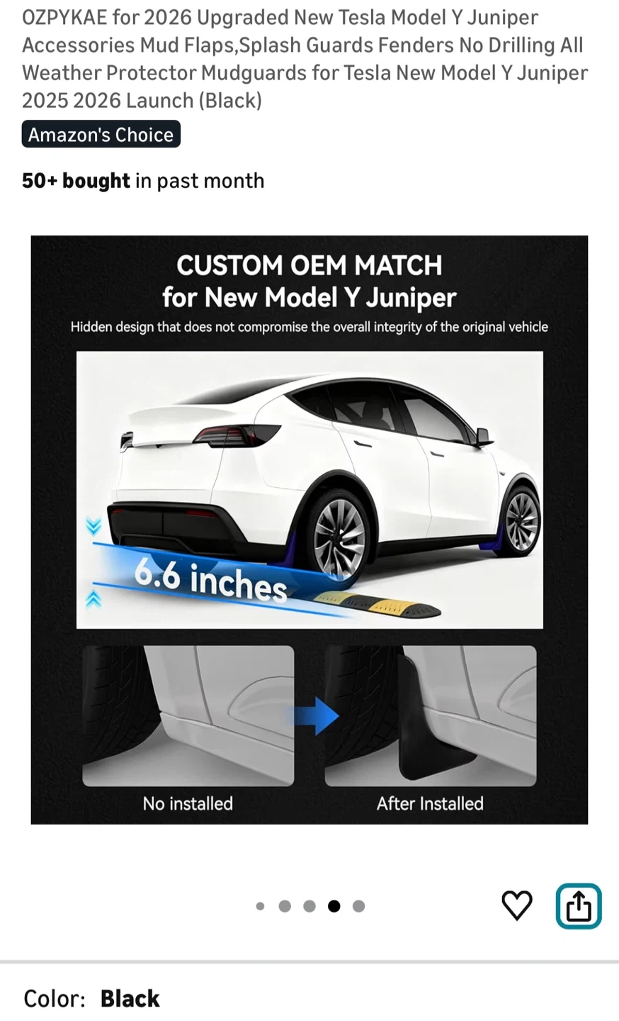 2026 Upgraded New Tesla Model Y Juniper Accessories Mud Flaps