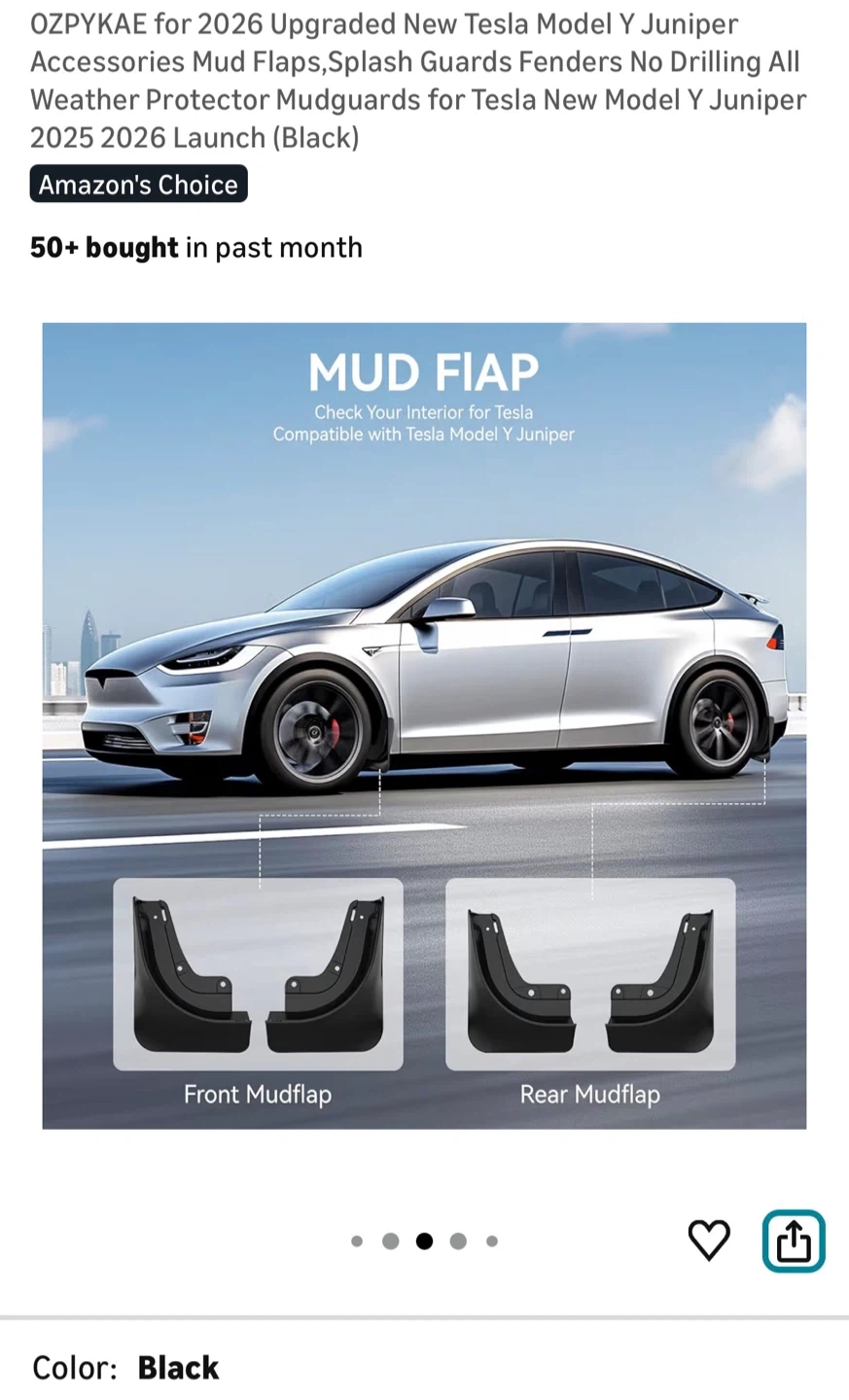 2026 Upgraded New Tesla Model Y Juniper Accessories Mud Flaps