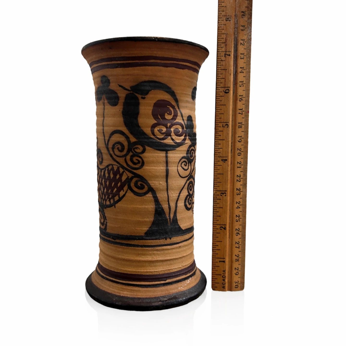 Yael Old Jaffa; Israeli pottery; Tel Aviv-Yafo; mid-century modern; folk modern; hand painted; studio earthenware; vintage vase.