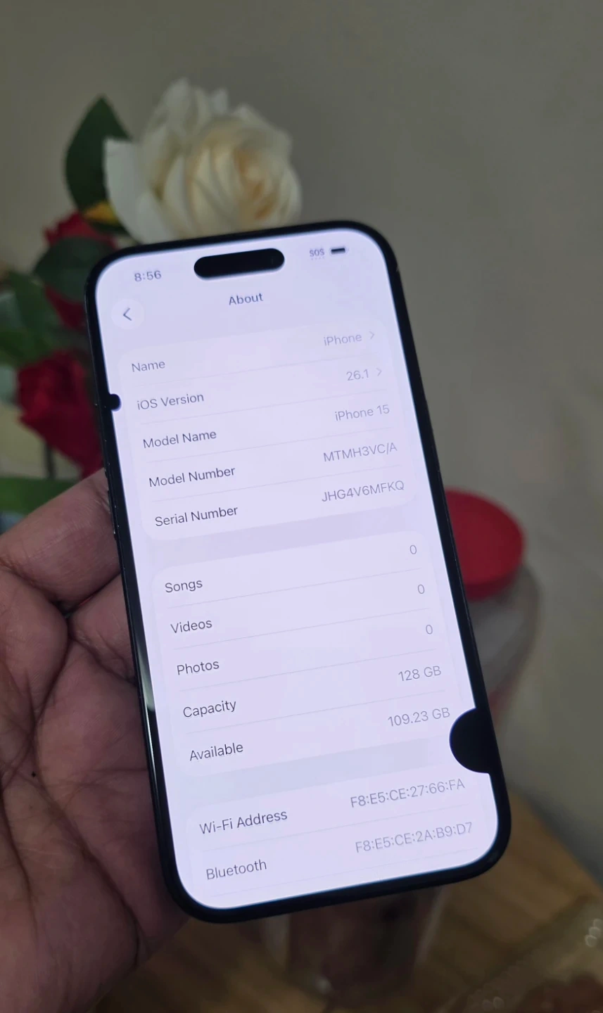 Selling an iPhone 15 with 2 Dots in the screen, nothing effect everything working, 128GB of storage, it is in used condition. The phone according to the images.