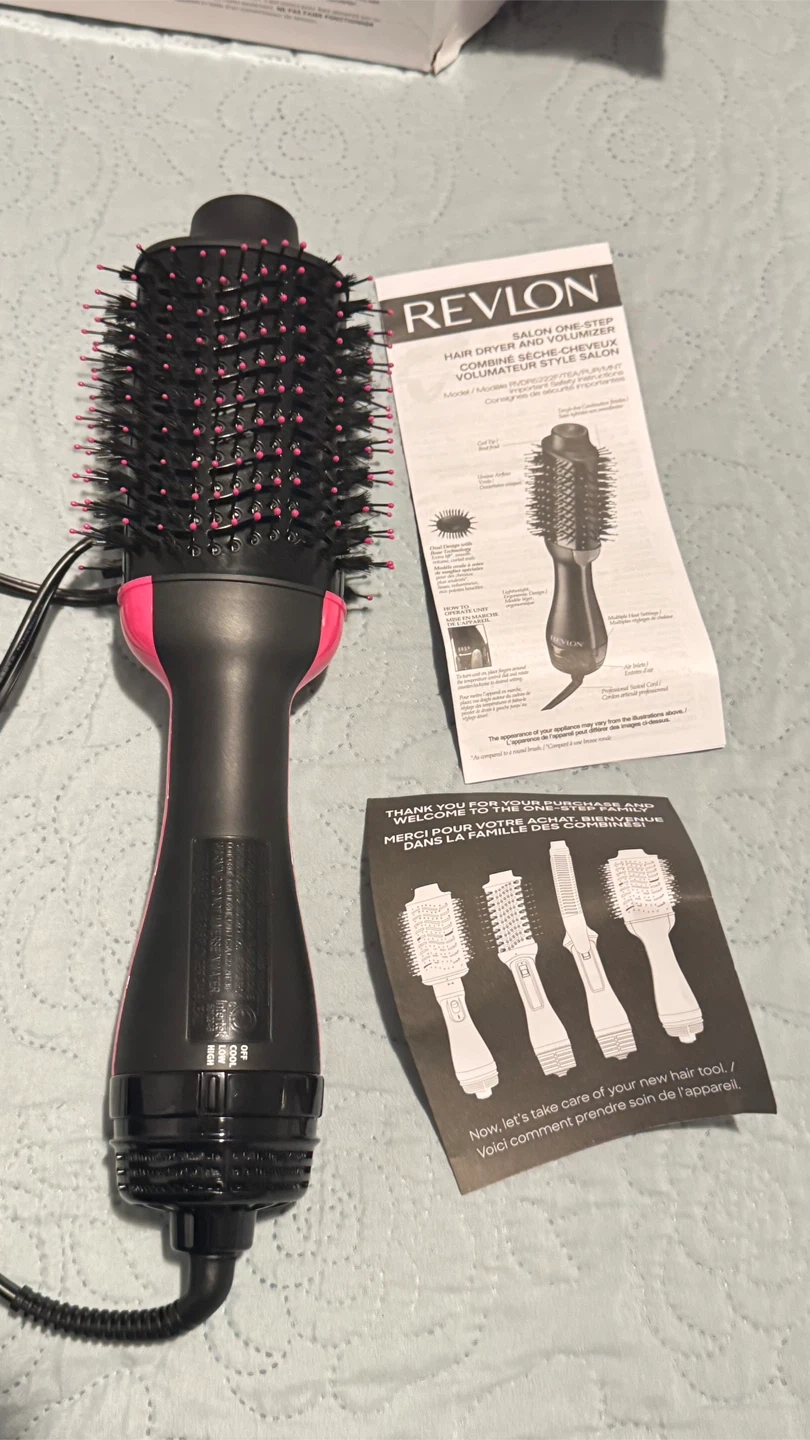 This Revlon One-Step Hair Dryer and Volumizer is designed to dry and style hair in one step. It's suitable for creating salon-like blowouts at home. This tool helps to reduce frizz and add shine to your hair.