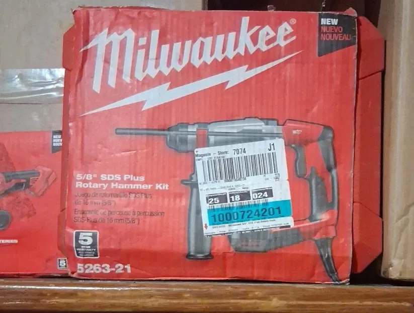 Milwaukee 5/8" SDS Plus Rotary Hammer Kit. It's a 5/8" SDS Plus rotary hammer kit. This tool is suitable for drilling into concrete and masonry. Brand new im the box asking price or best offer period