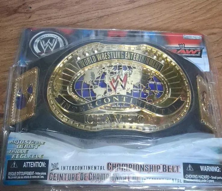 This is a World Wrestling Entertainment Intercontinental Championship belt. It's adjustable and comes in its original packaging. Perfect for young wrestling fans!