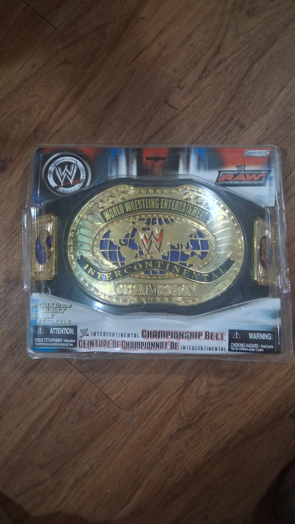 This is a World Wrestling Entertainment Intercontinental Championship belt. It's adjustable and comes in its original packaging. Perfect for young wrestling fans!