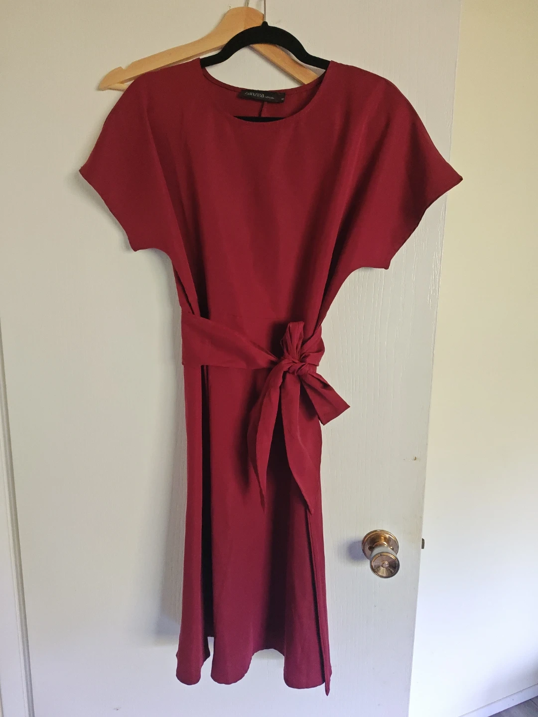 A lovely dress, size medium! It's in great condition and features a unique tie detail that can be styled in different ways. Perfect for adding a touch of elegance to your wardrobe