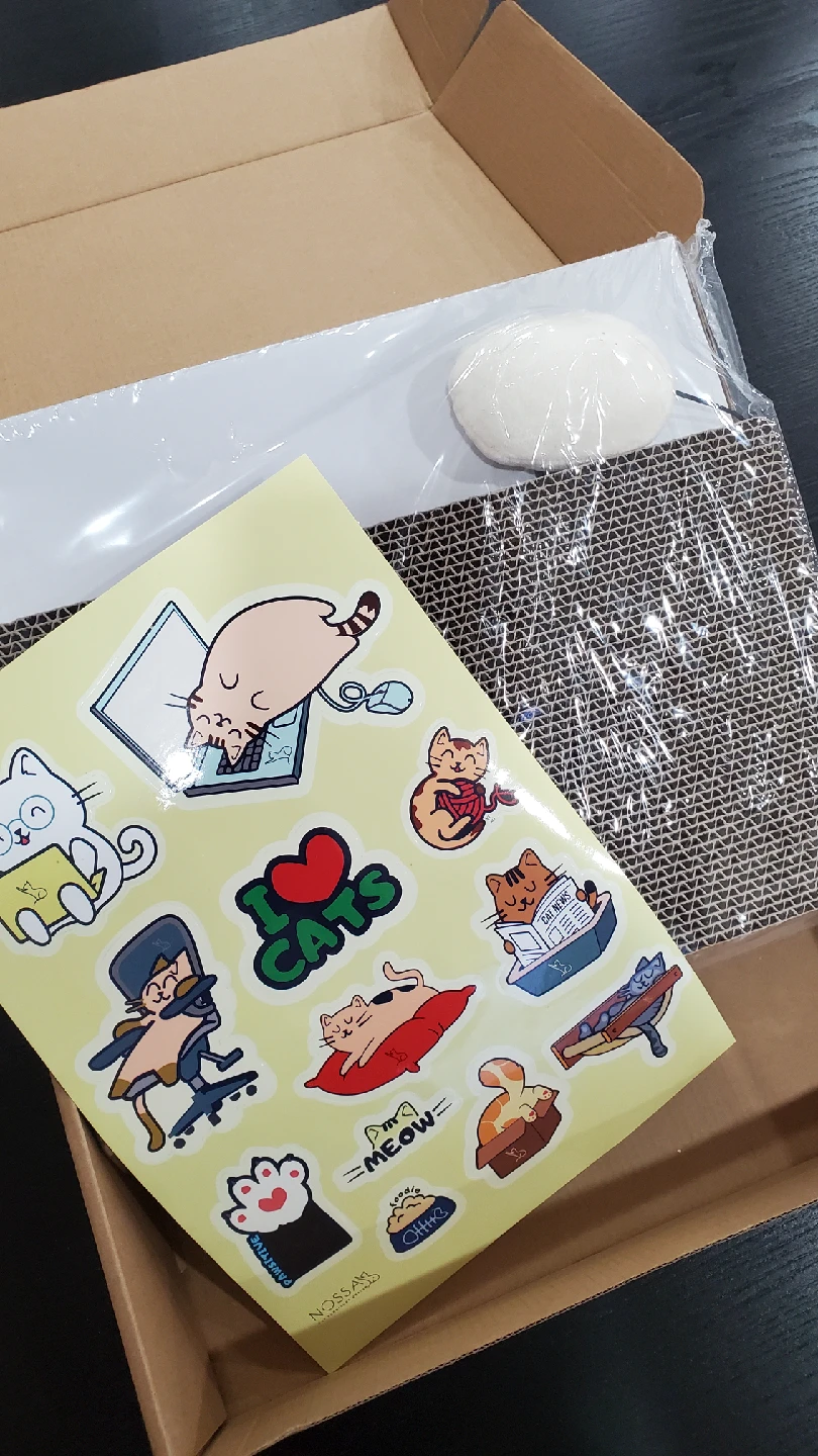 Selling a brand new NOSSA cat scratching laptop! It comes with an extra scratchpad for extended fun. The laptop also features a fluffy toy mouse and a rolling bell ball to keep your furry friend entertained. It also includes cool stickers to customize your cat's new favourite toy! The dimensions are 33 cm x 25 cm x 4 cm.