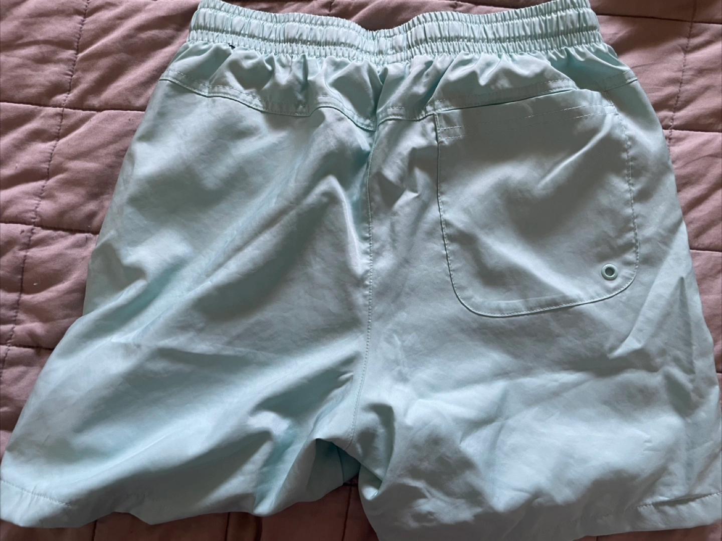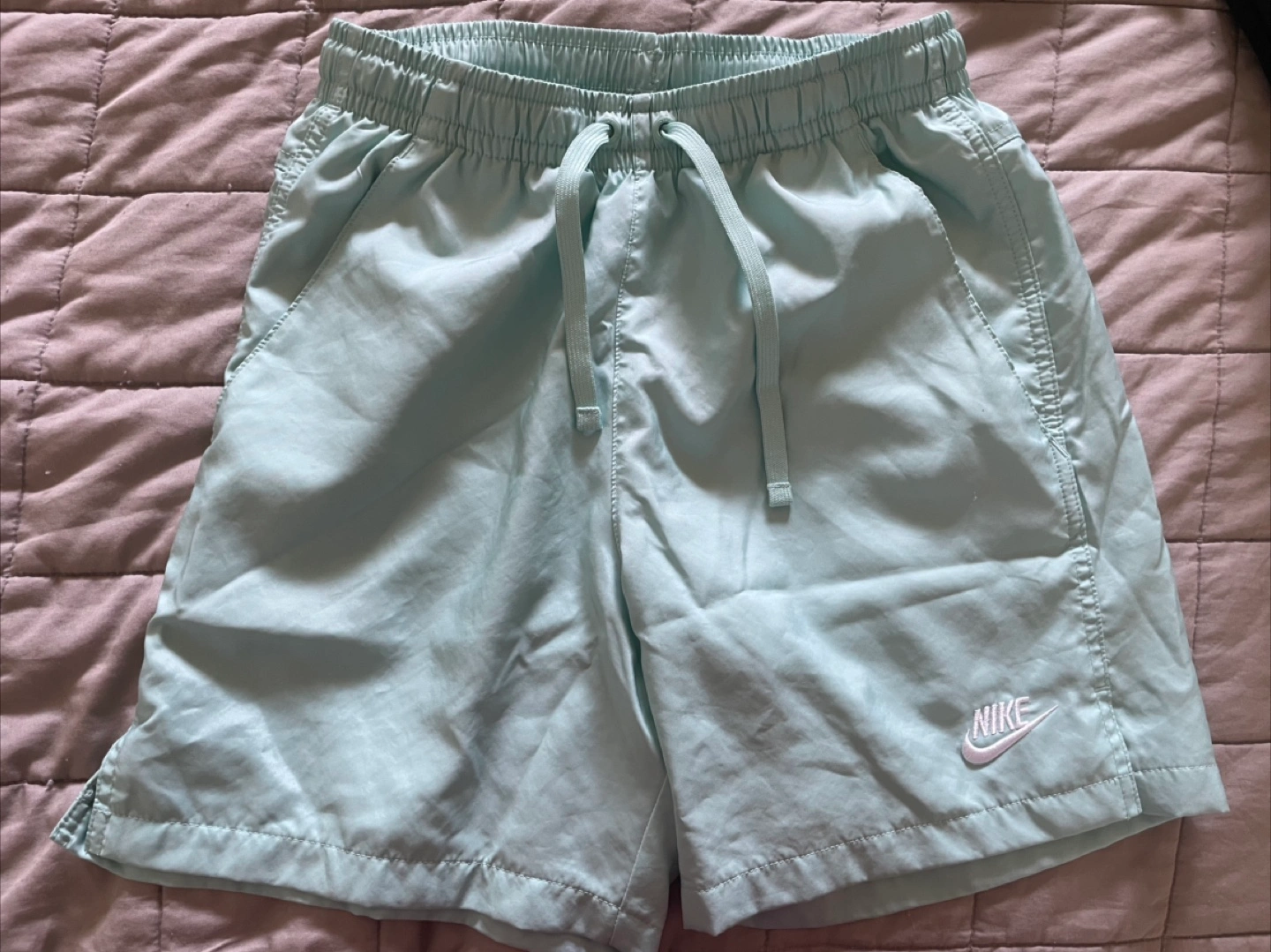Light teal shorts. Drawstring waist. Single pocket in the back and on the side. Perfect for lounging on a hot summer day. Size XS