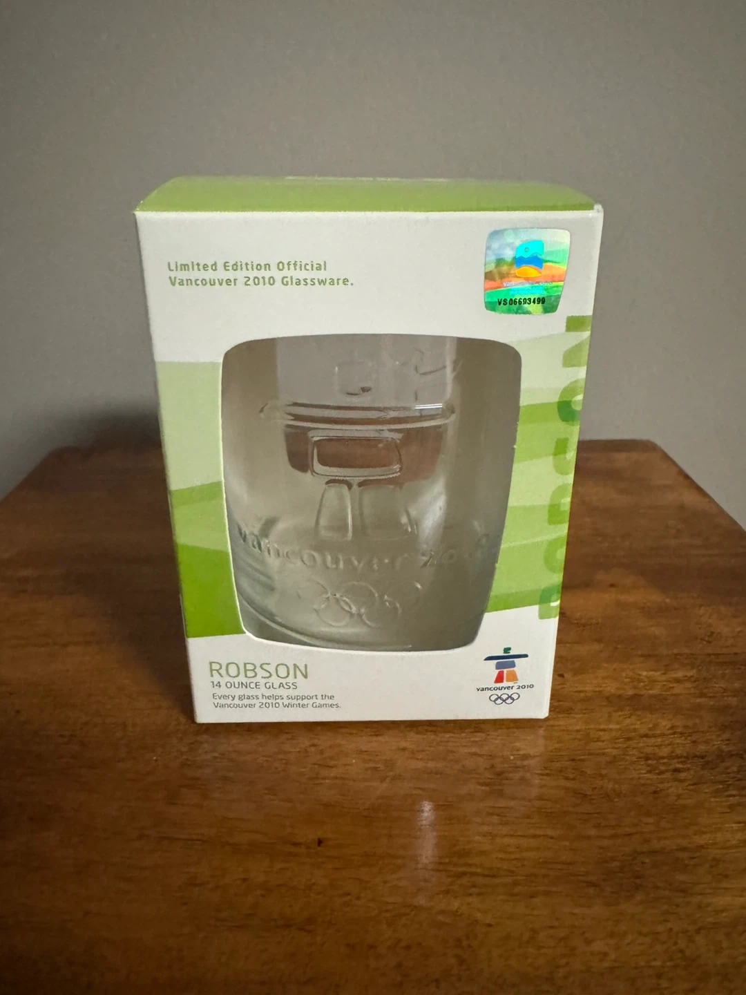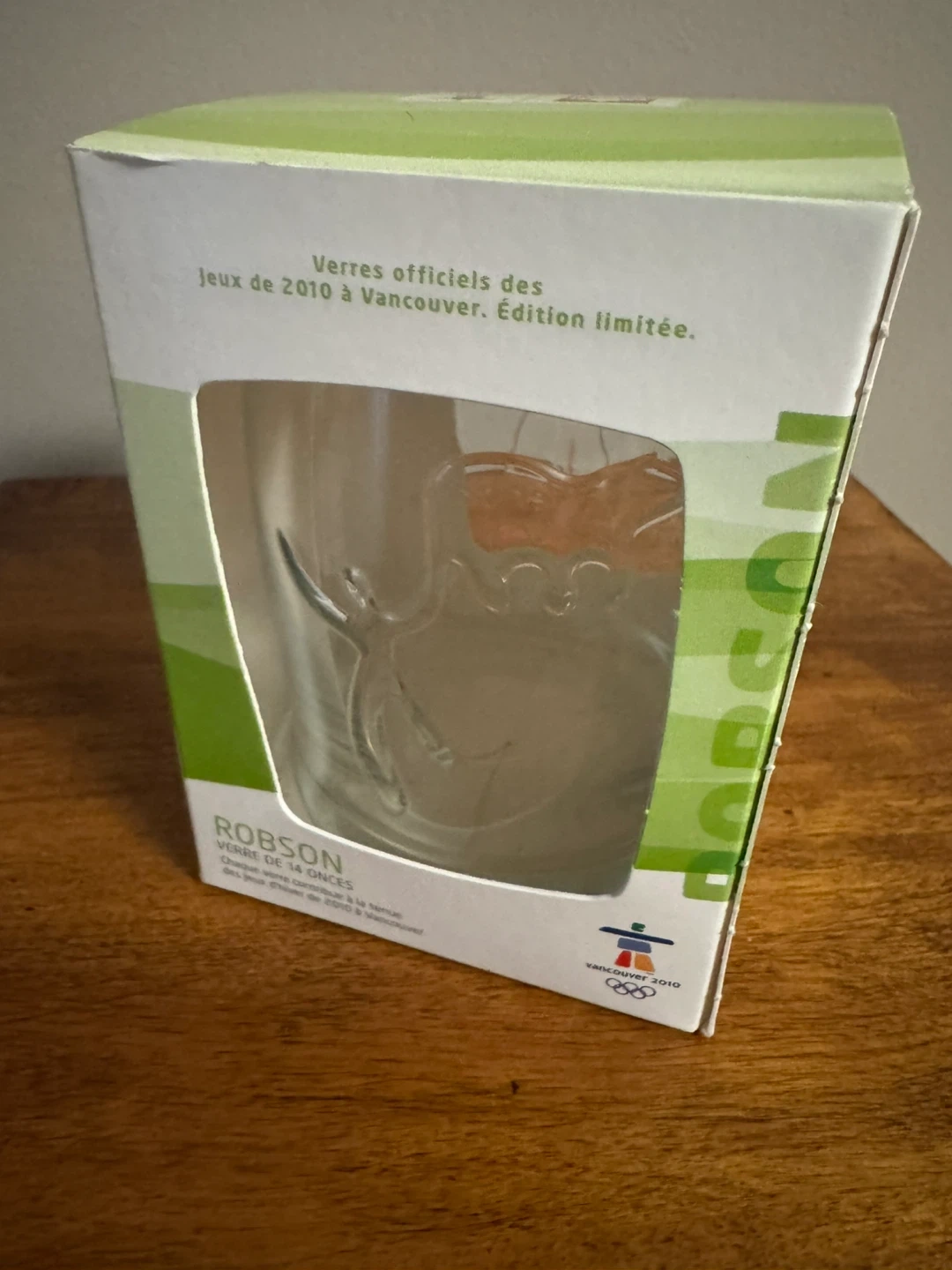 This is a limited edition Robson glass from the Vancouver 2010 Winter Games. It's a 14 ounce glass. Every glass helped support the Vancouver 2010 Winter Games.