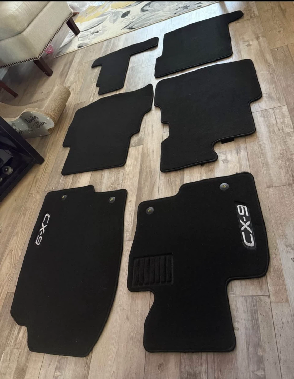 Selling a full set of black floor mats for a Mazda CX-9. They're brand new and ready to keep your car's interior clean!