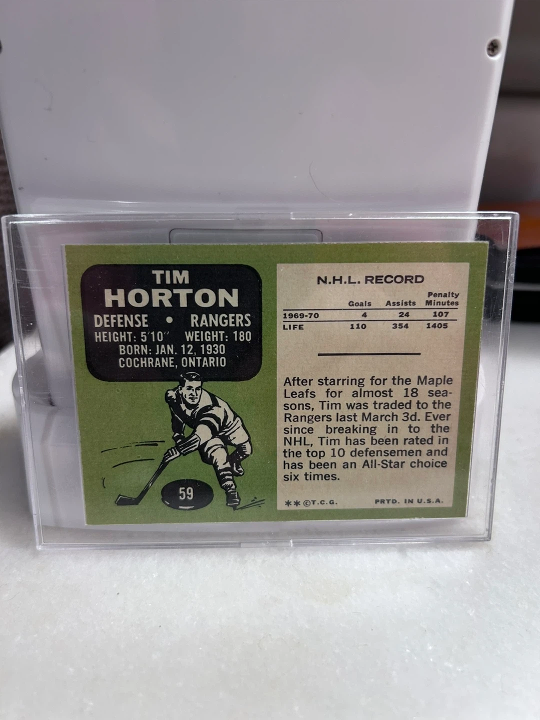 Tim Horton 1970-71 Topps Hockey Card N.Y. Rangers Defense