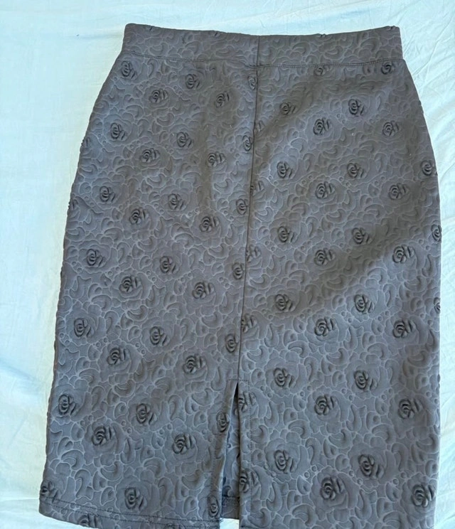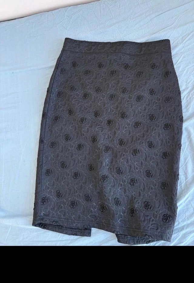 Add a touch of elegance to your wardrobe with this Eve Stone black skirt, size medium, featuring a subtle rose pattern. The skirt is in good condition, ready to elevate your style. Brand: Eve Stone Size: Medium Colour: Black Pattern: Rose. If you're seeing this ad, it means the skirt is still waiting for you!