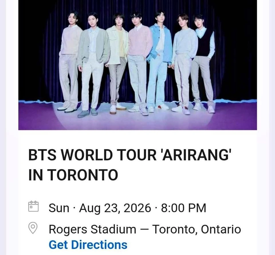 I am selling 2 floor tickets to BTS in Toronto on Aug 23. Section D5, Row 3. The current price quoted is in CAD. Happy to meet up in person in Vancouver for ticket transfer!