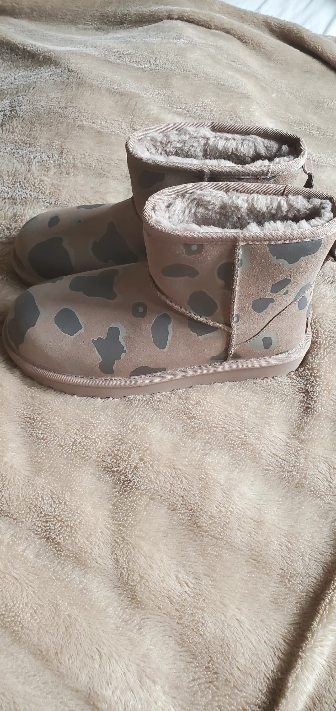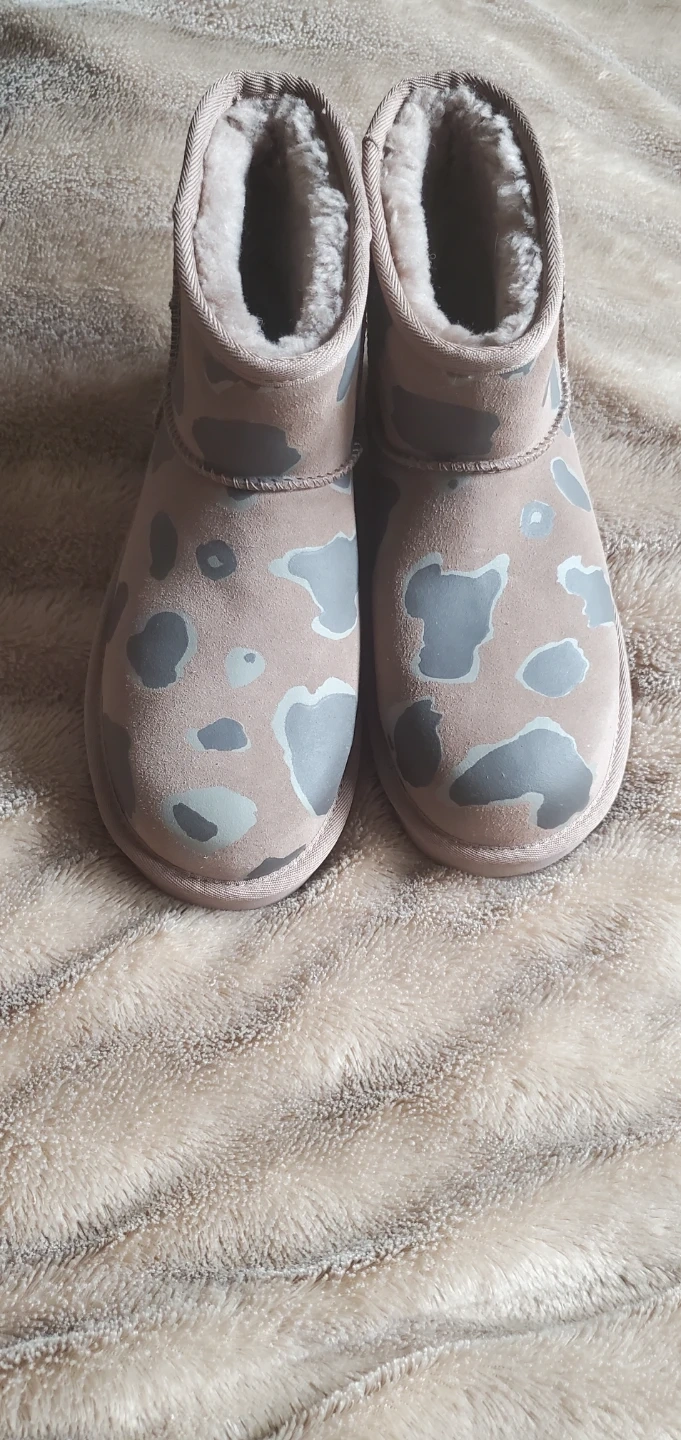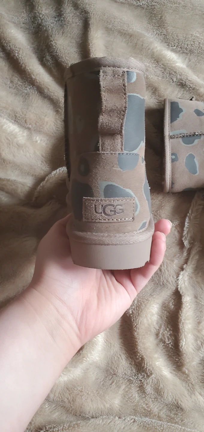 These UGG Classic Mini boots feature a cool camouflage design. They're lined with cozy sheepskin for warmth. Size is 7 US women's Brand new never worn.