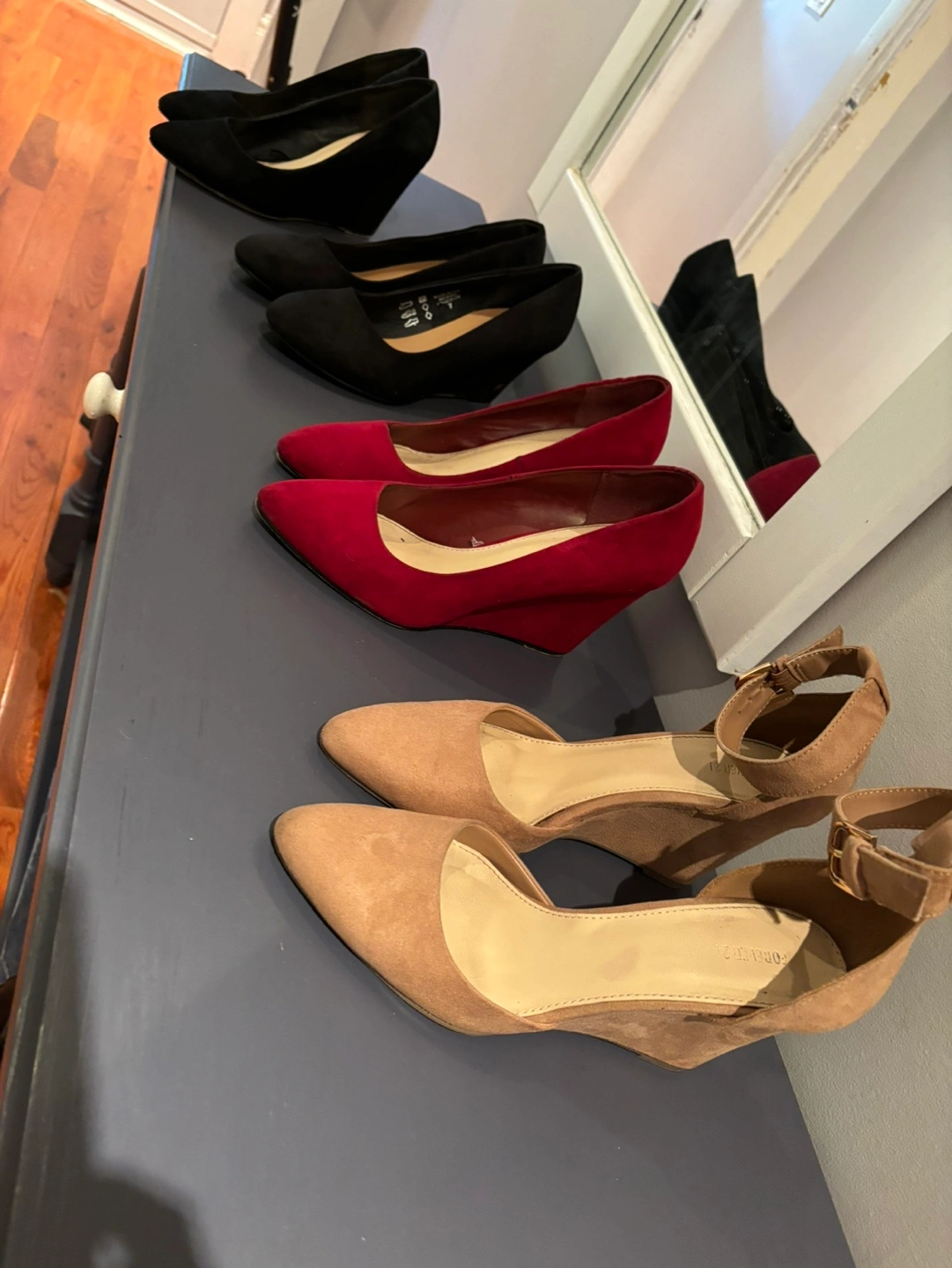 Set of 4 Forever 21 wedge heels in black, red, and tan. All size 7,Worn but in great condition.4 for 15