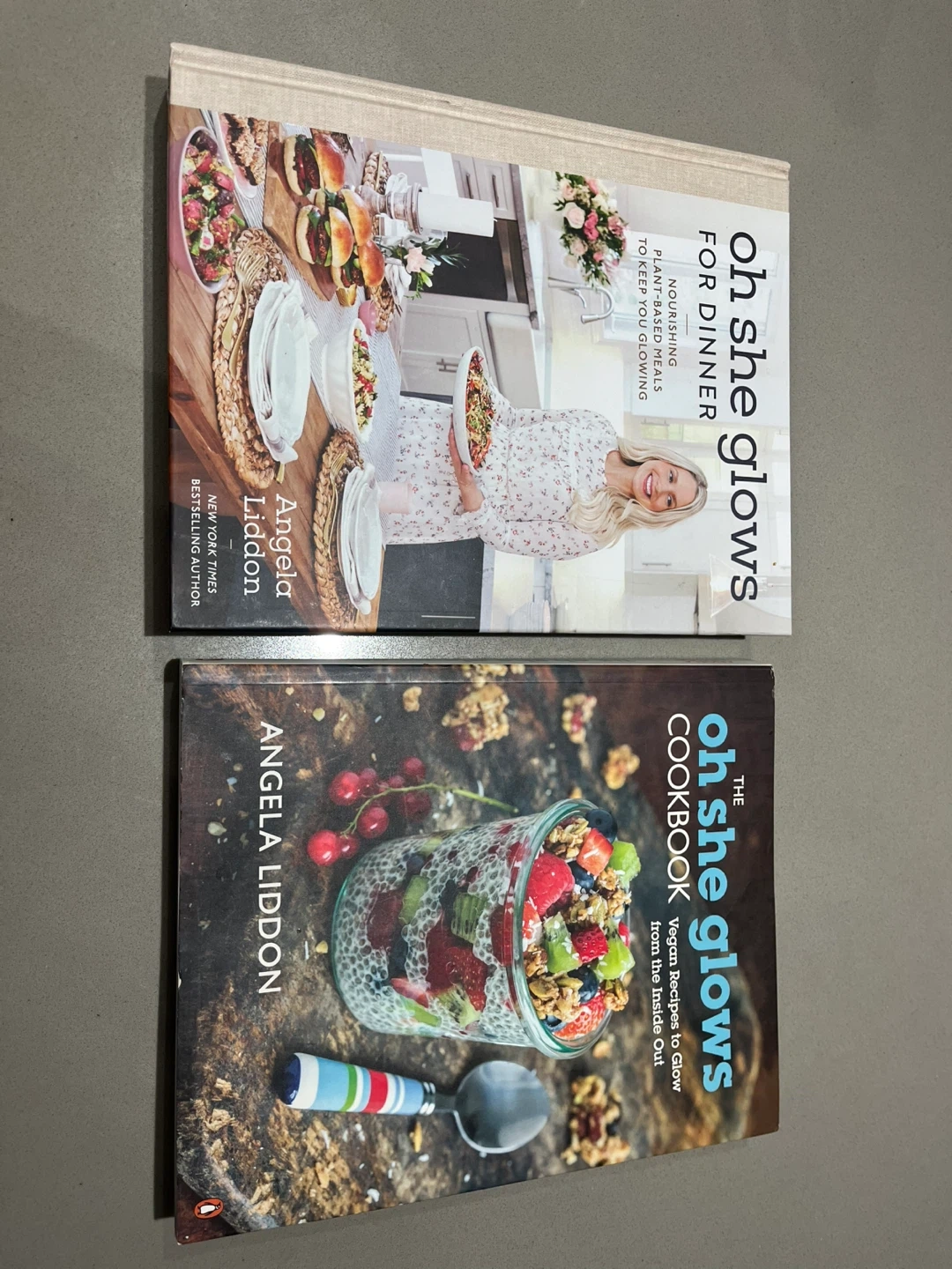 56Selling two cookbooks by Angela Liddon: "Oh She Glows for Dinner" and "The Oh She Glows Cookbook"! Both books are filled with delicious plant-based recipes to keep you glowing. Great for anyone interested in vegan cooking or healthy eating. Also a great gift.