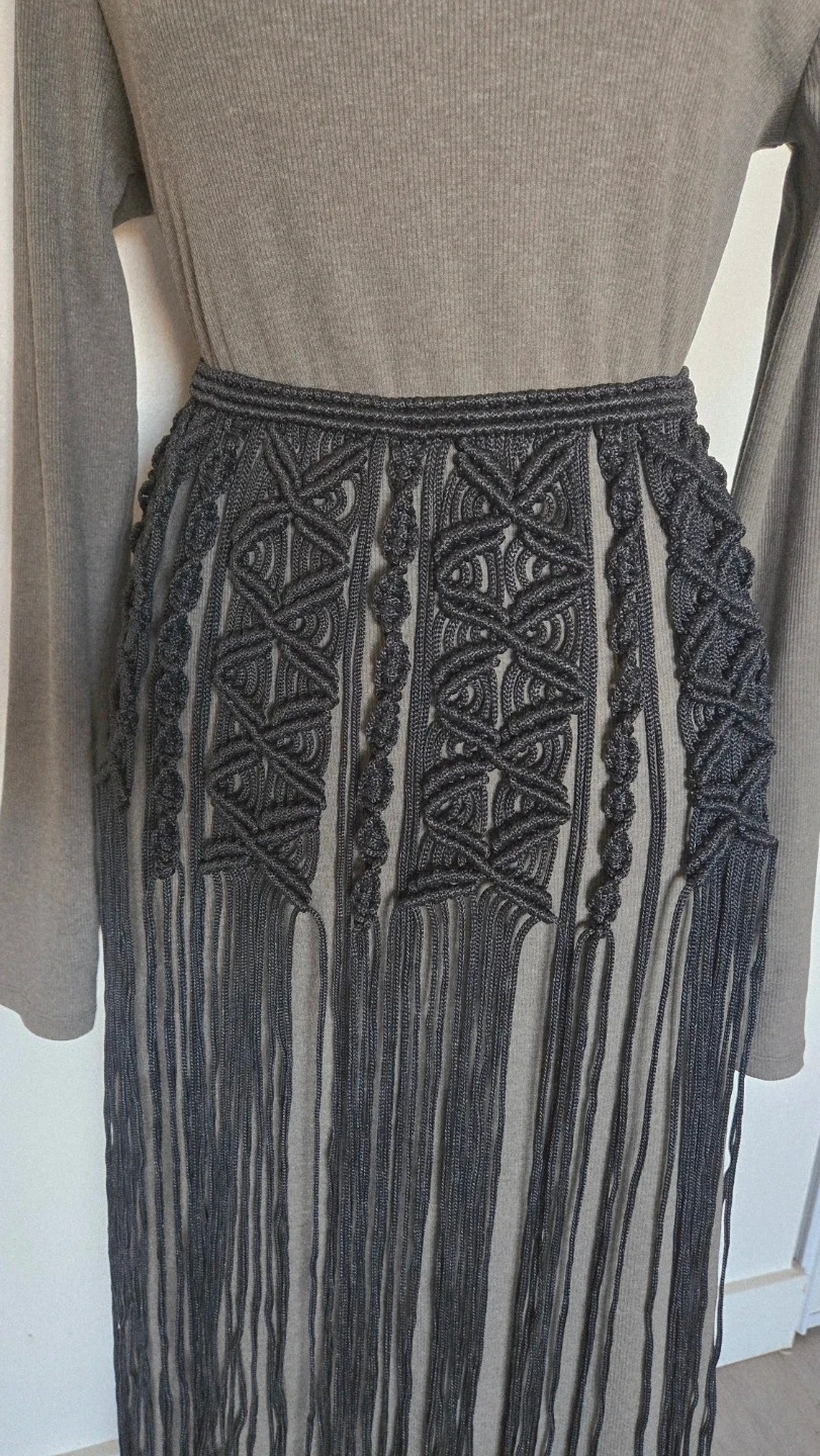 Selling a unique, handmade macrame skirt! The intricate knotting and fringe detail make it a real statement piece. Perfect for adding a bohemian touch to your wardrobe. It's in great condition and ready for a new owner