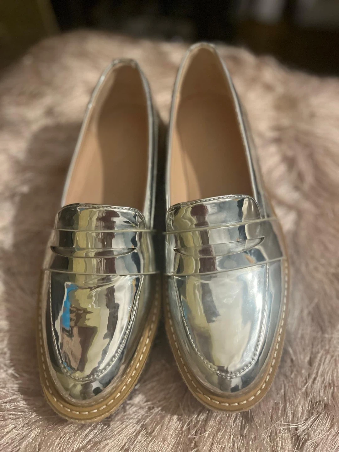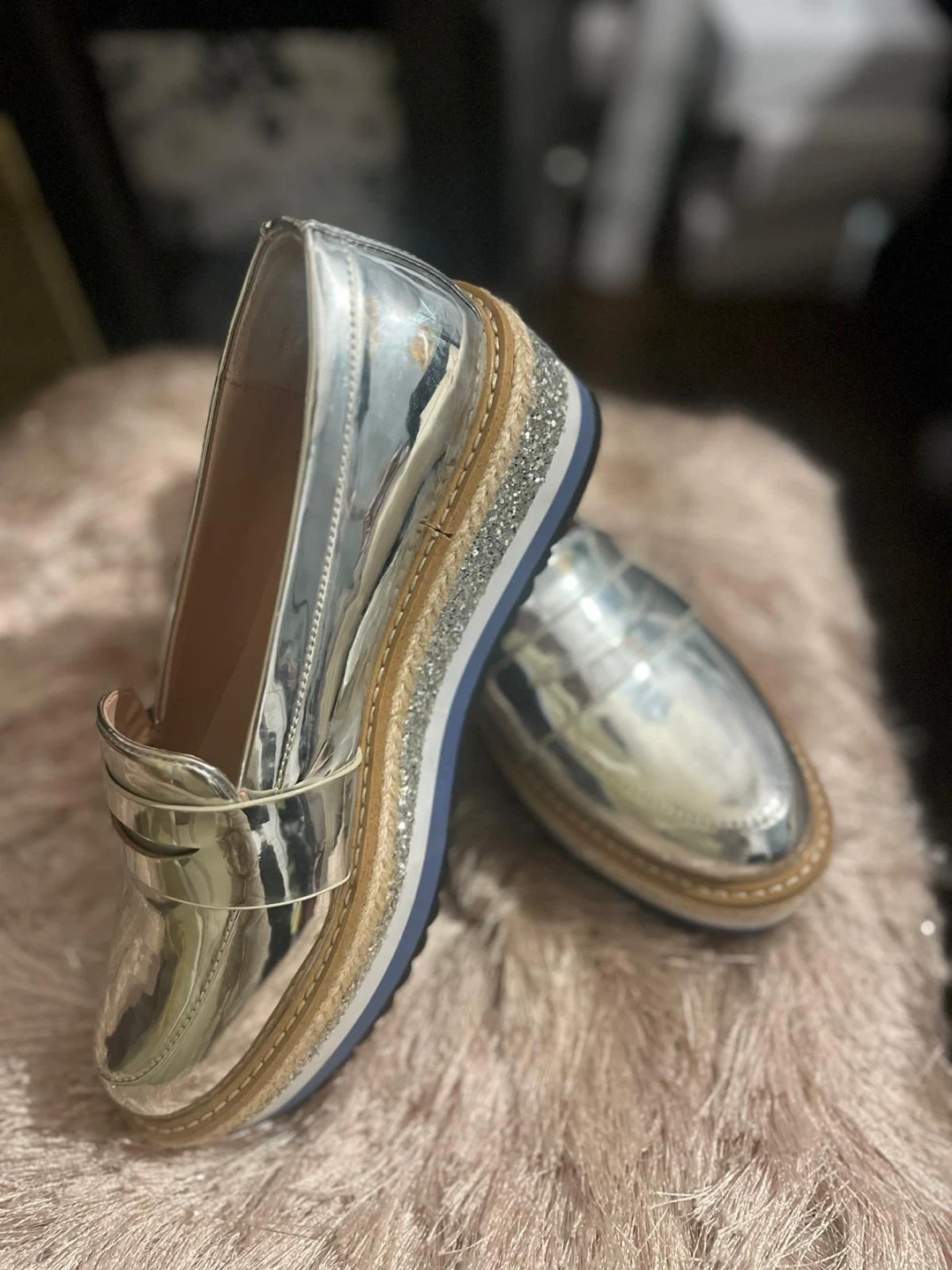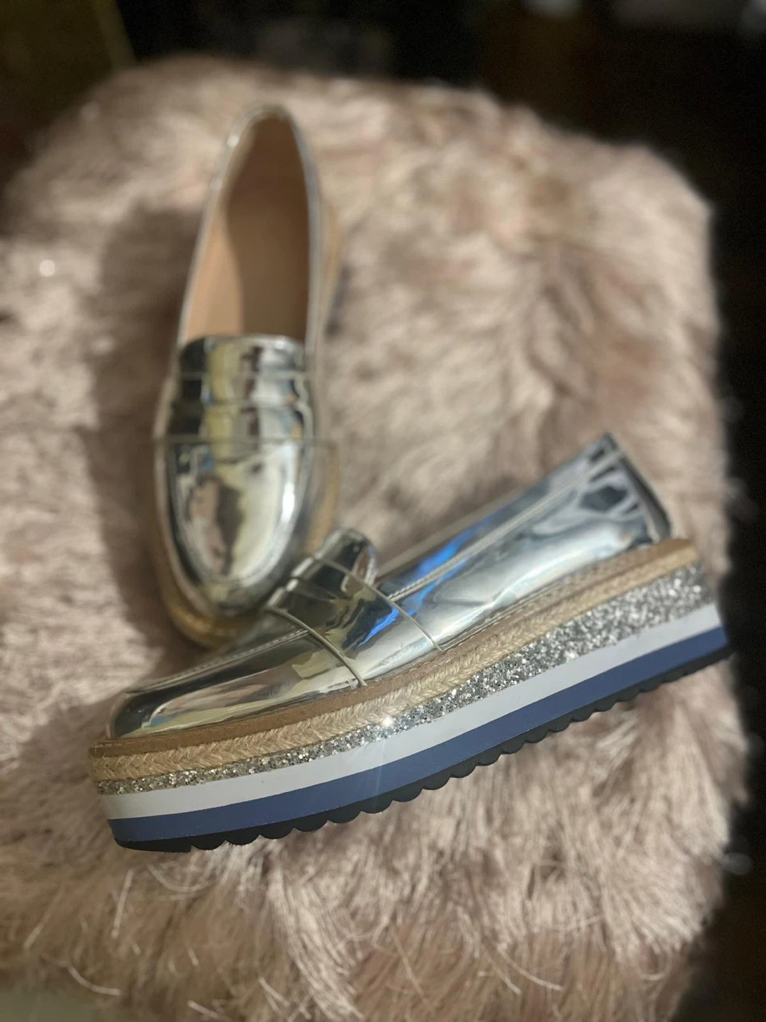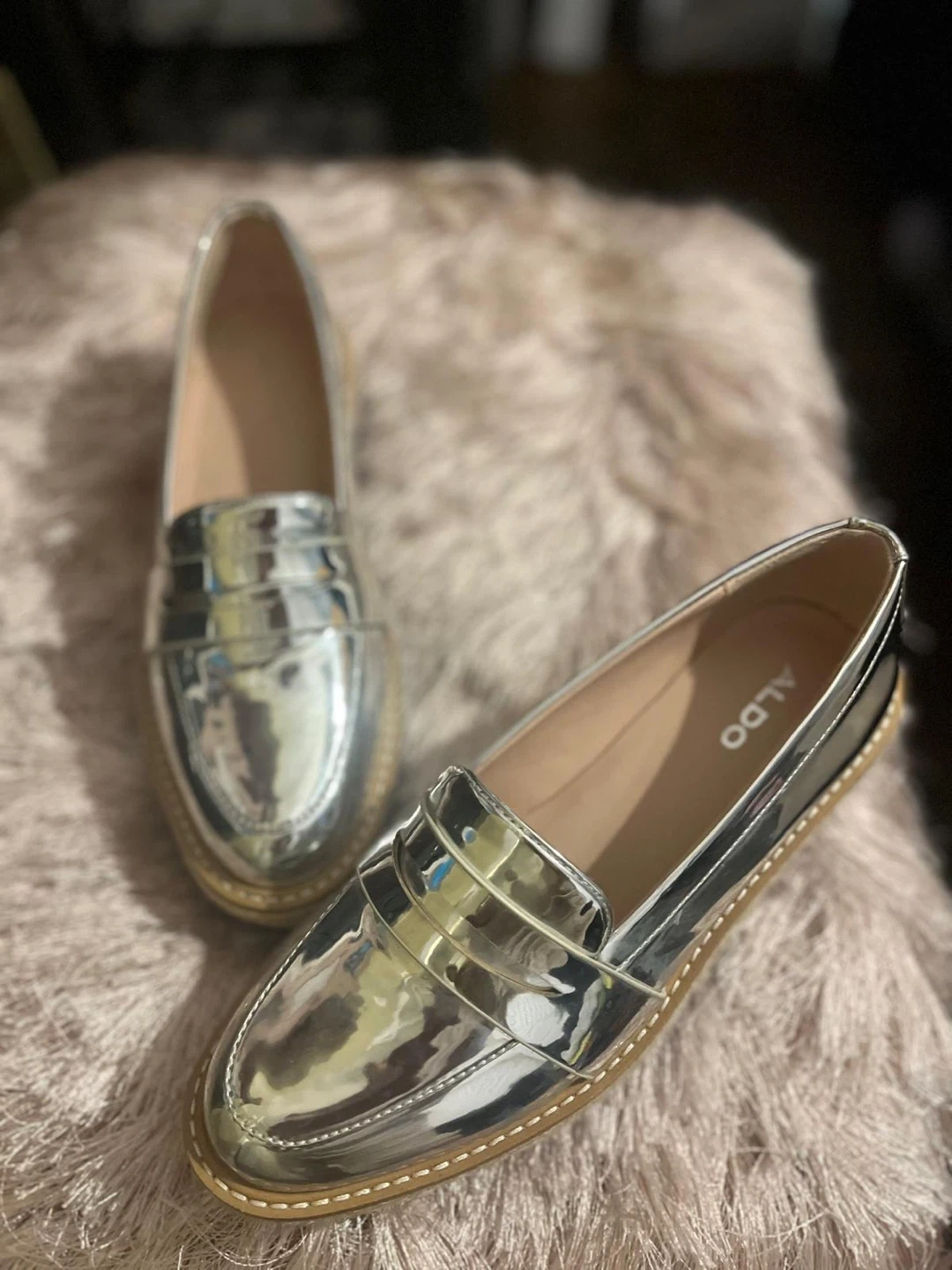 These are a stylish pair of silver platform loafers from ALDO! They're never worn shape and ready for a new owner. Perfect for adding a bit of shine to your outfit