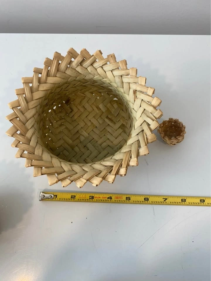 Made from natural straw/reed with a woven design.