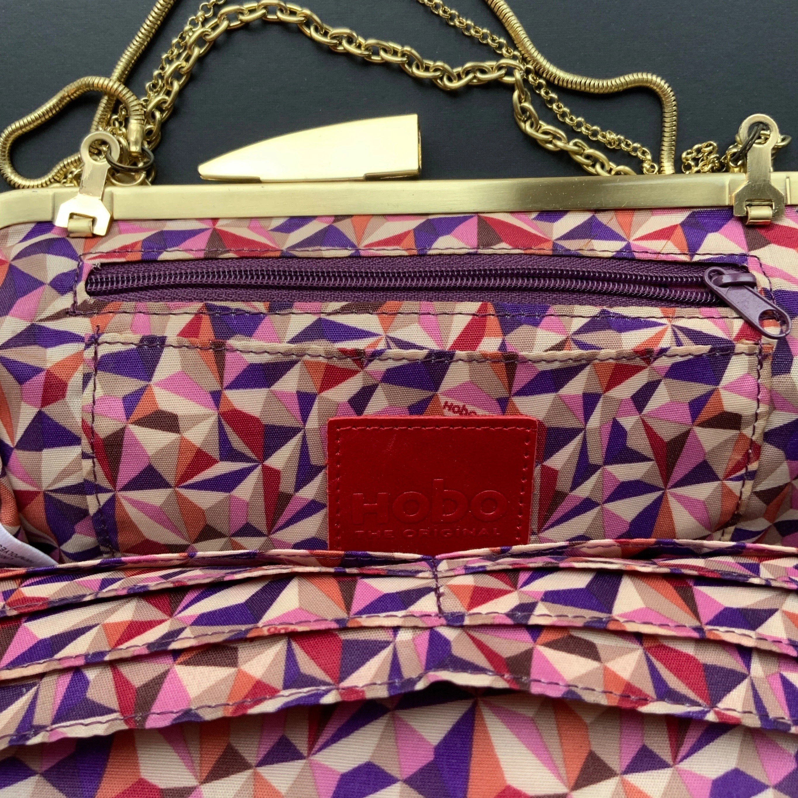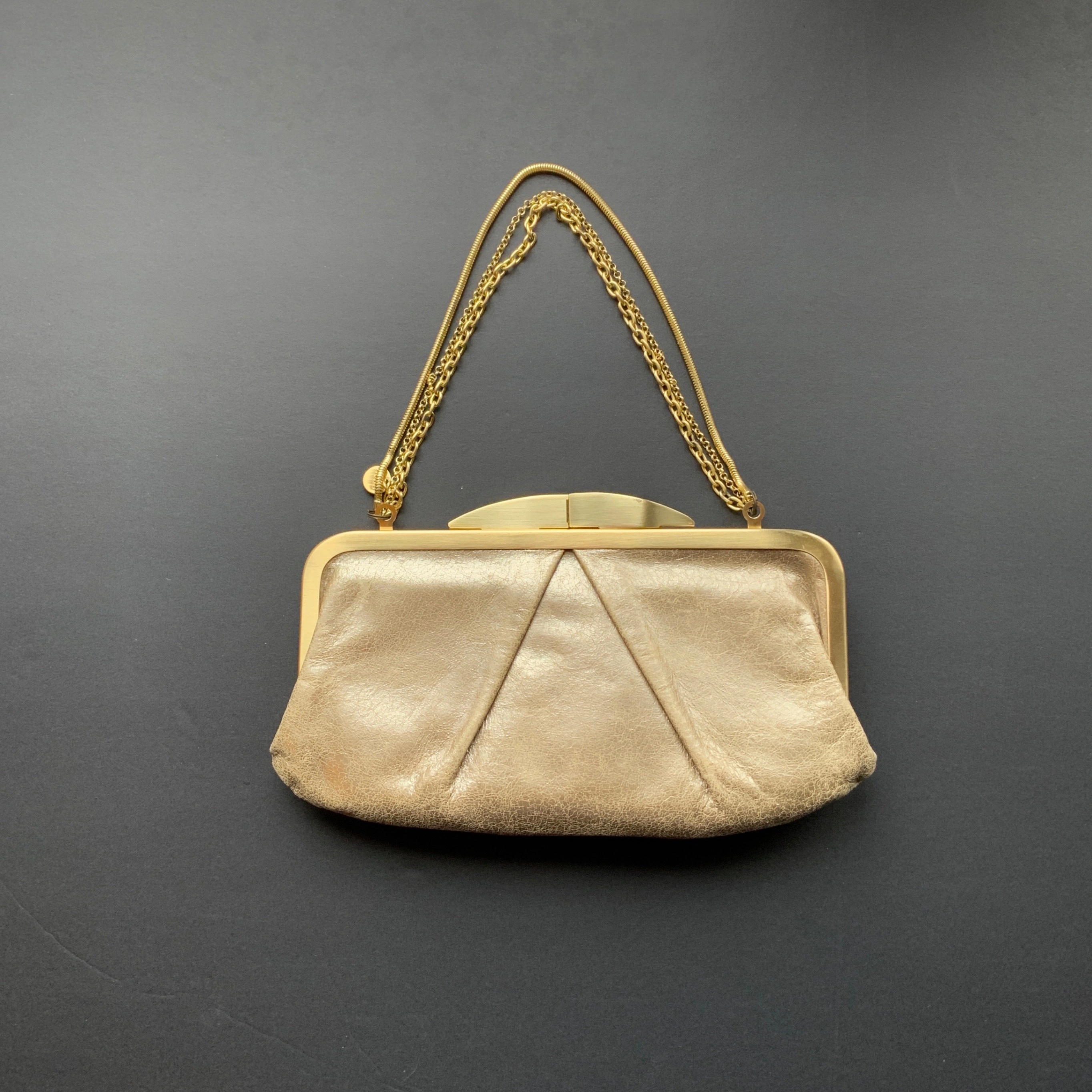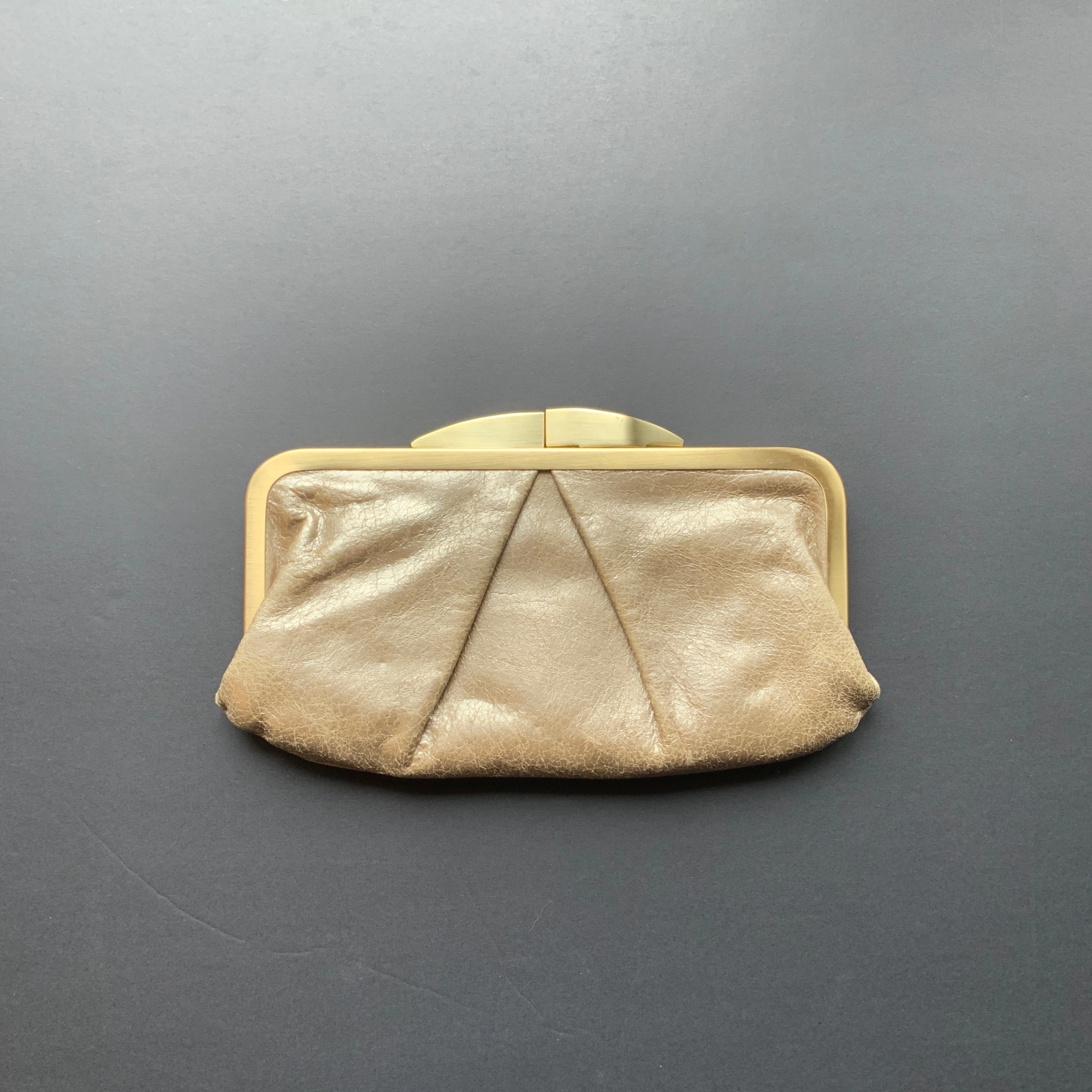 A beautiful accessory for an evening out. In mint condition. Neutral. Complements anything. Hold it in your hand or carry it with the stunning gold accent straps. BOHO. Genuine leather. Polyester interior.