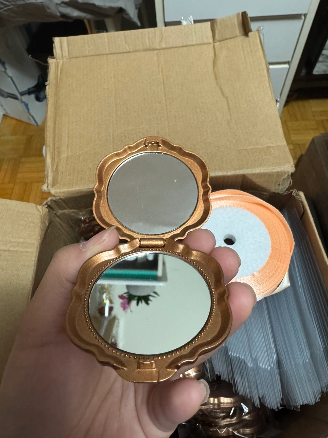 100 pcs Set Rose Compact Mirrors Bulk Wedding Party Favors. Including Rose Mirrors Thank You Tags Plastic Clear Boxes with Ribbons for Wedding Bridal Shower Party Guests Souvenir Gift.