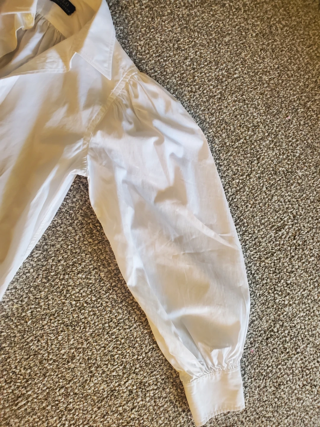 Classic white button-up shirt from Polo Ralph Lauren. Features a collared neckline and button closures. Puffed sleeves add a stylish detail. Made from a comfortable fabric. Size small would fit women size 2-6. Pick up in Poco near Shaughnessy and Lougheed
