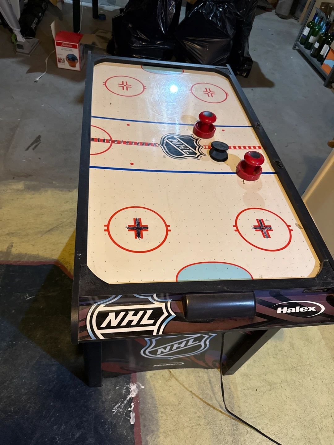 Buy & SellHalex NHL Air Hockey TableHalex NHL Air Hockey Table$32Selling a Halex NHL air hockey table. It's in good condition and ready for some fun games! Perfect for family entertainment or friendly competitions.ConditionOkayWHERE TO MEETCheck LocationView MapSELLERverifiedRickLiverpool600 reviews0 chats·1 favorites·7 viewsSEND CHAT TO SELLERHi Rick! I’m interested in your listing.Hi Rick! I’m interested in your listing.Get the Karrot app to chatSign In to chat