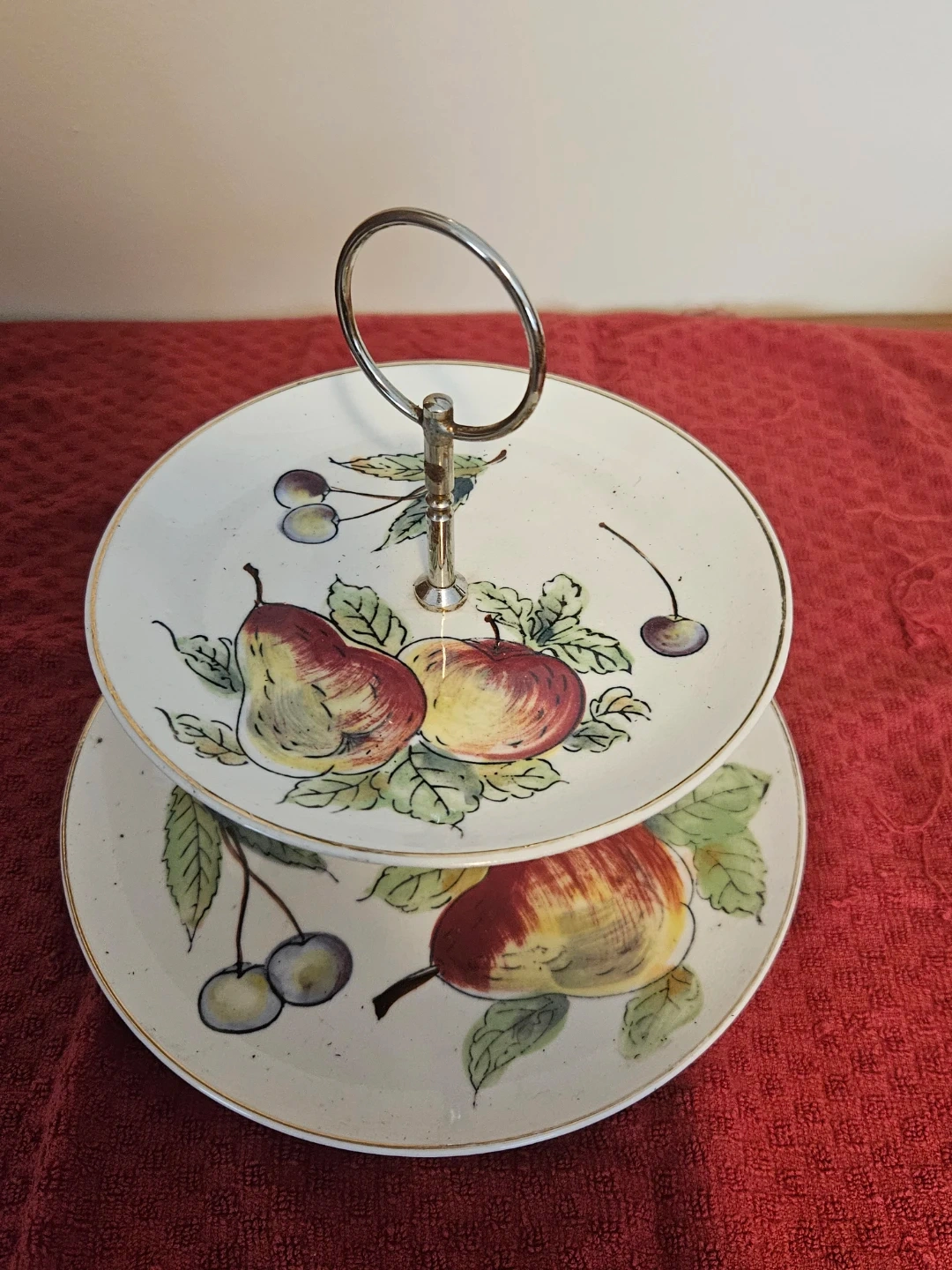 G.C. hand painted two tier cake plate made in Japan. No damage.