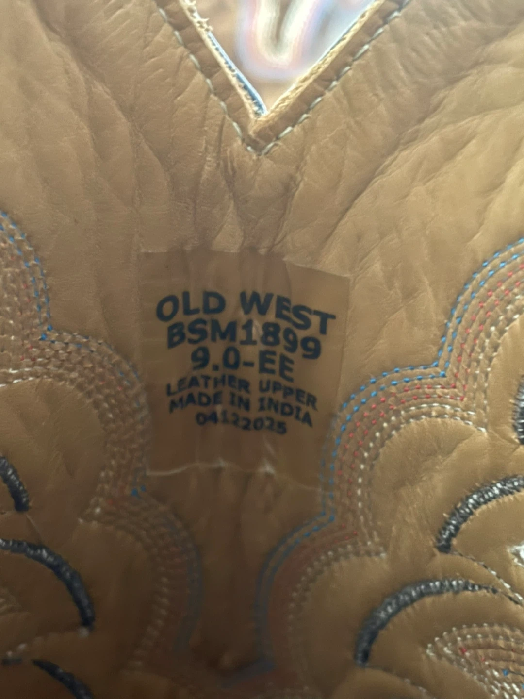 These Old West cowboy boots are made with a leather upper and a size 9.0-EE width. They feature intricate stitching on the shafts and a distressed brown finish. Perfect for rodeo or everyday wear!
