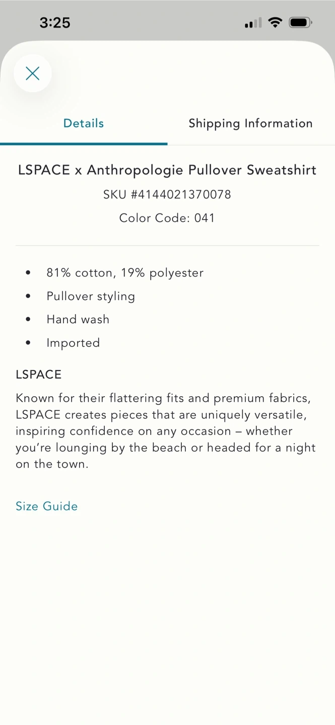 Buy & SellBNWT Anthropologie LSPACE Sweatshirt LBNWT Anthropologie LSPACE Sweatshirt L$30Very well made retails $165+ duties&tax Firm price Meet up near king stationConditionNewWHERE TO MEETMeet nearbyView MapSELLERHeatherOld Toronto1000+213 reviews1 chats·3 favorites·17 viewsSEND CHAT TO SELLERHi Heather! I’m interested in your listing.Hi Heather! I’m interested in your listing.Get the Karrot app to chatSign In to chat